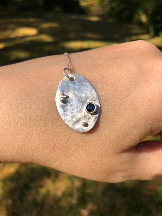 Natural earth-mined sapphire pendant in argentium silver and 24 karat goldRegular price $290.00 USDRegular priceUnit price / per-