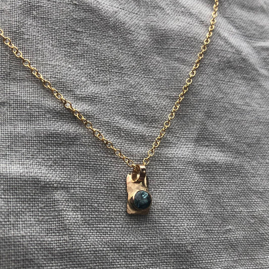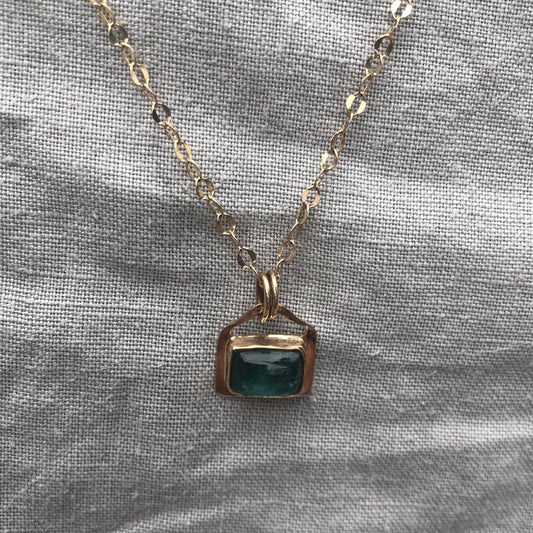 Solid gold teal green tourmaline pendant // 14k blue-green tourmaline necklaceRegular price From $620.00 USDRegular priceUnit price / per-