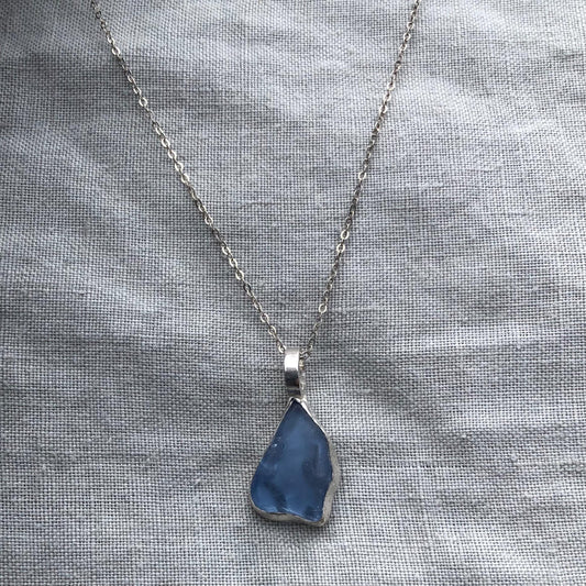 Light blue sea glass pendant in argentium sterling silver // Organic genuine beach glass necklaceRegular price $90.00 USDRegular priceUnit price / per
