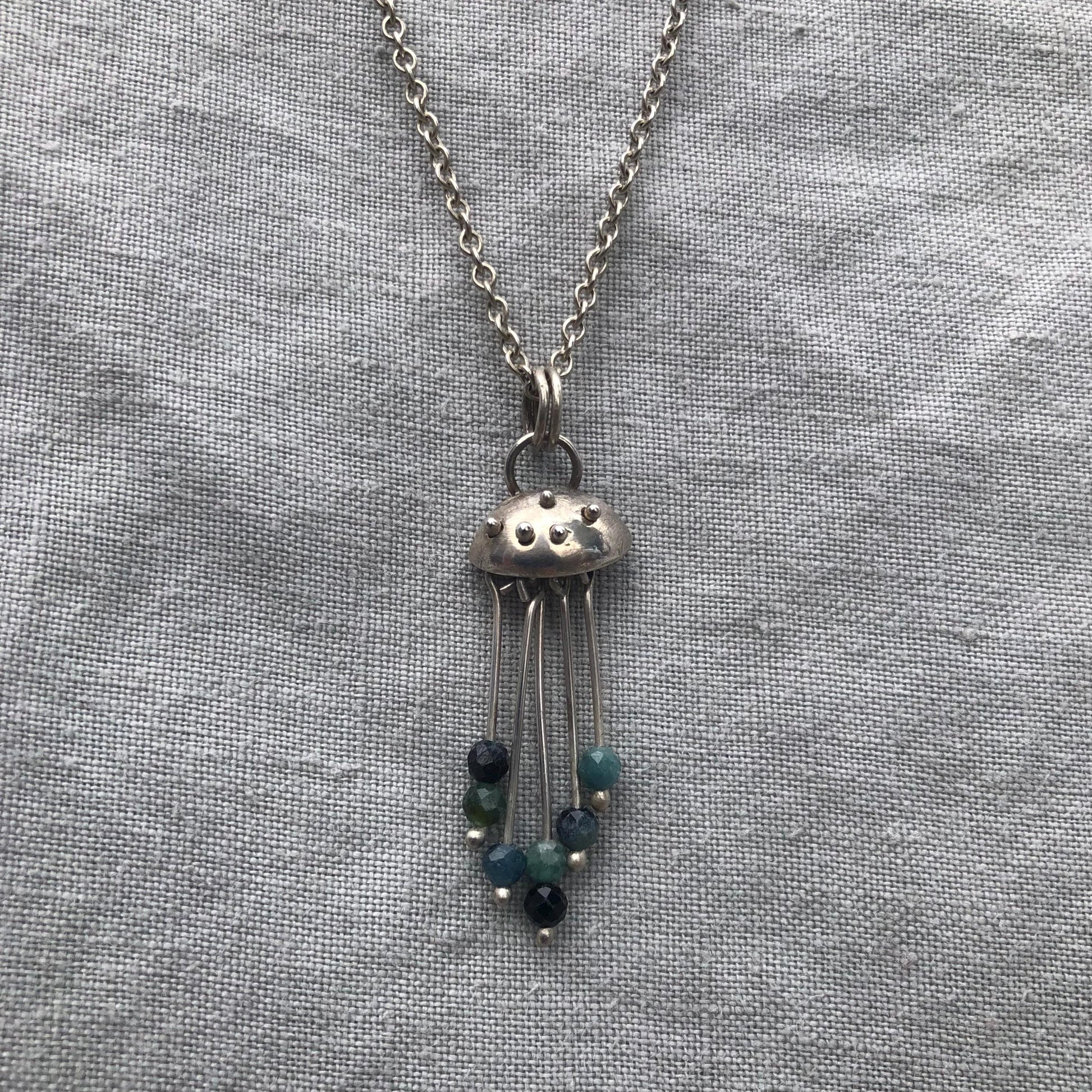 Blue tourmaline pendant in argentium sterling silver // Jellyfish pendant
