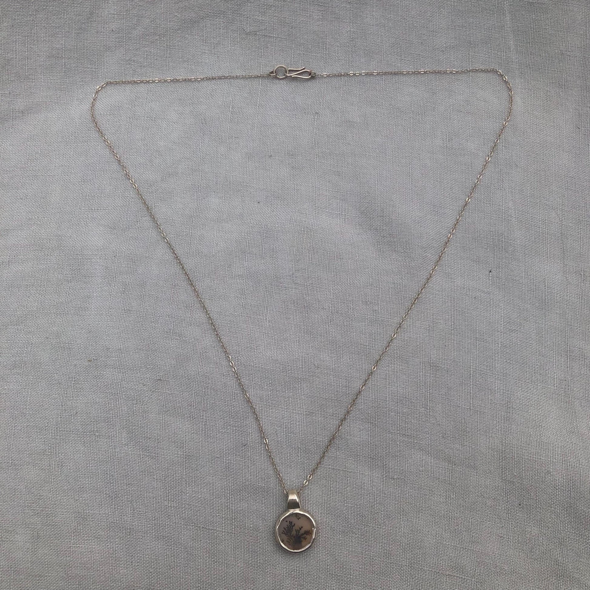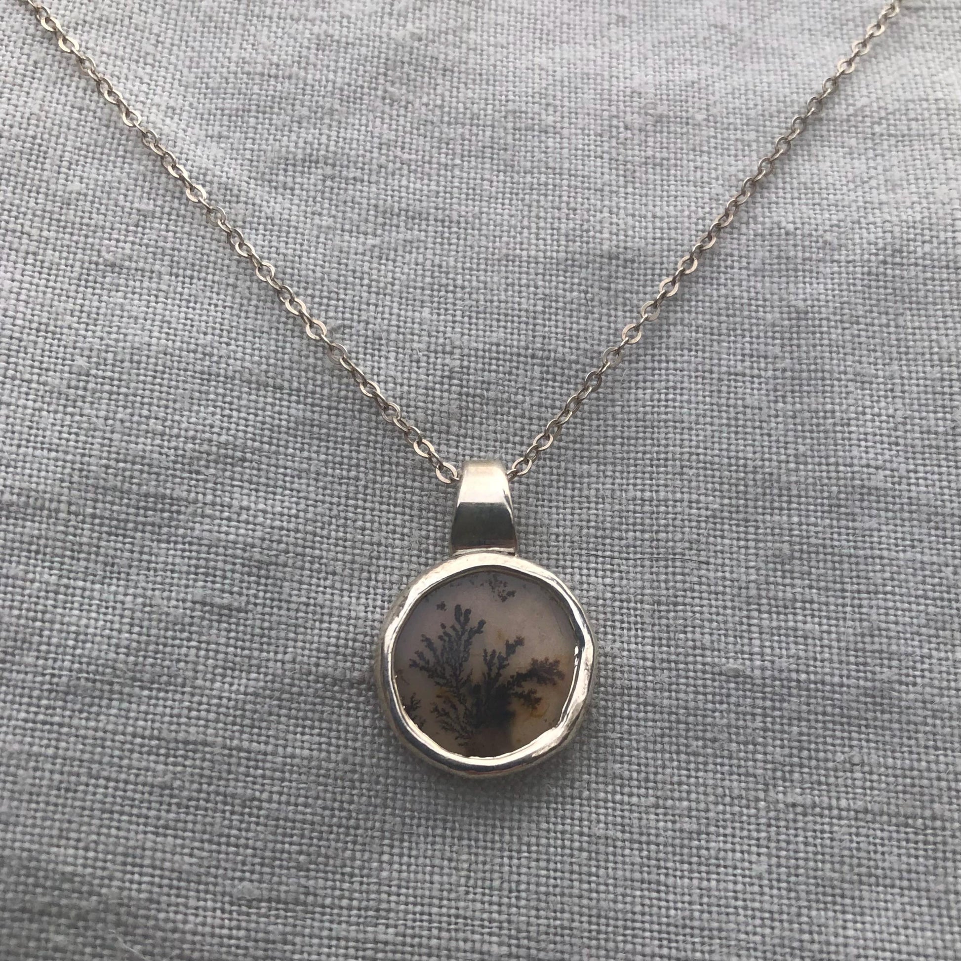 Dendritic agate pendant in argentium sterling silver // Tiny dendritic agate pendant no. 2