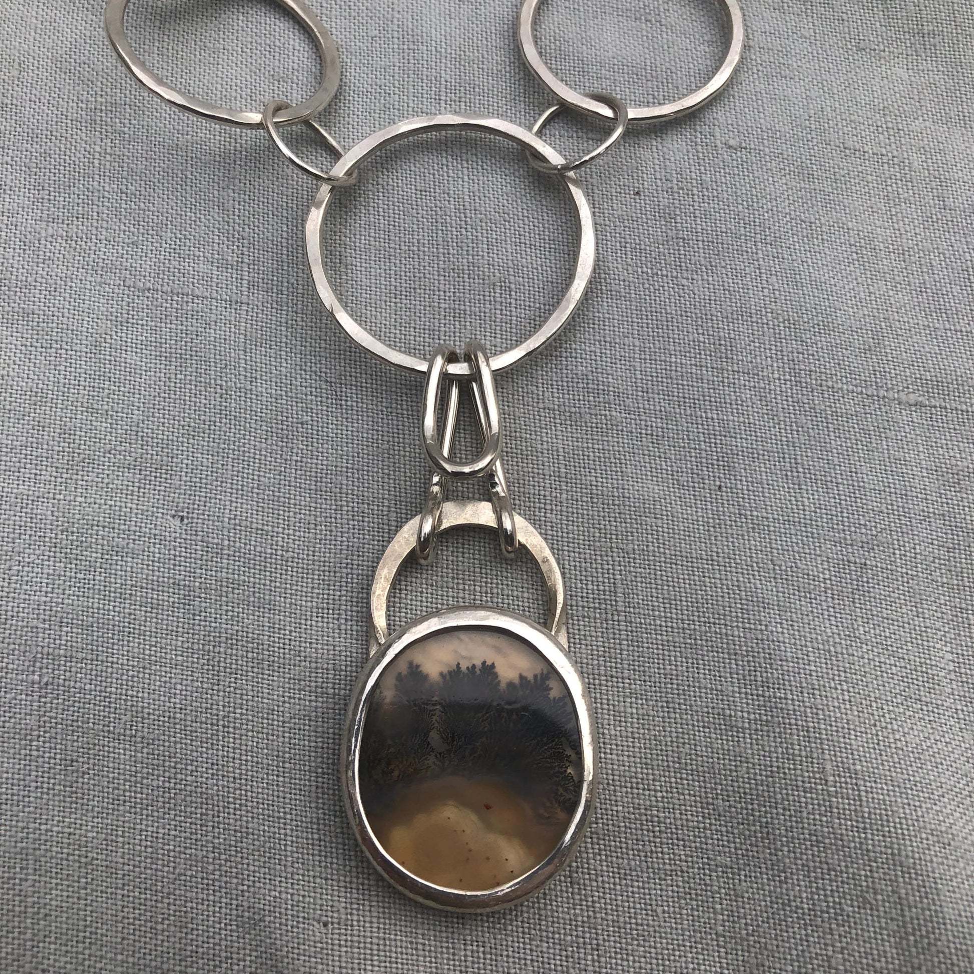 Dendritic agate pendant with a chunky handmade argentium sterling silver chain