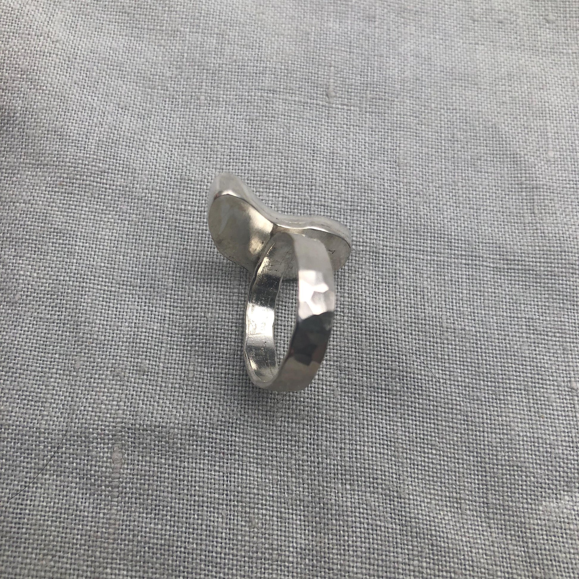 Freeform blue sea glass ring in argentium sterling silver // Bean-shaped found beach glass ring // U.S. size 5