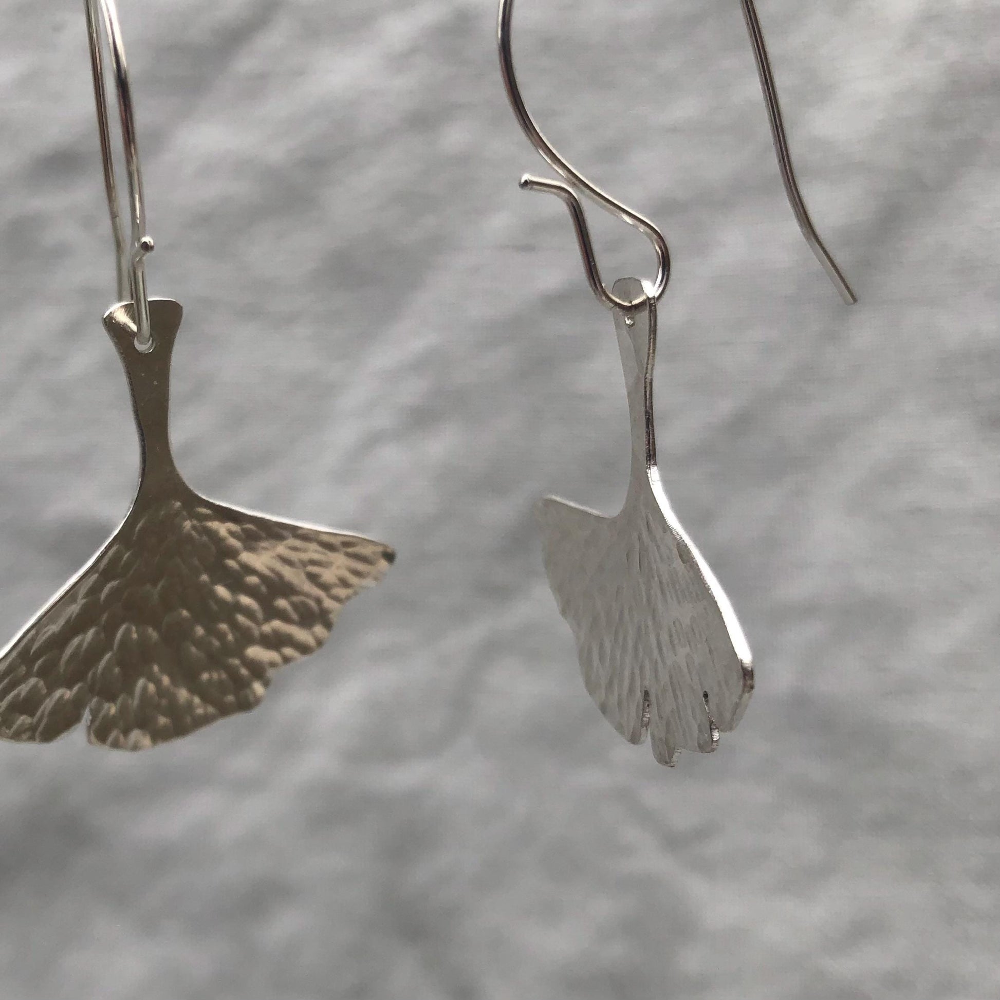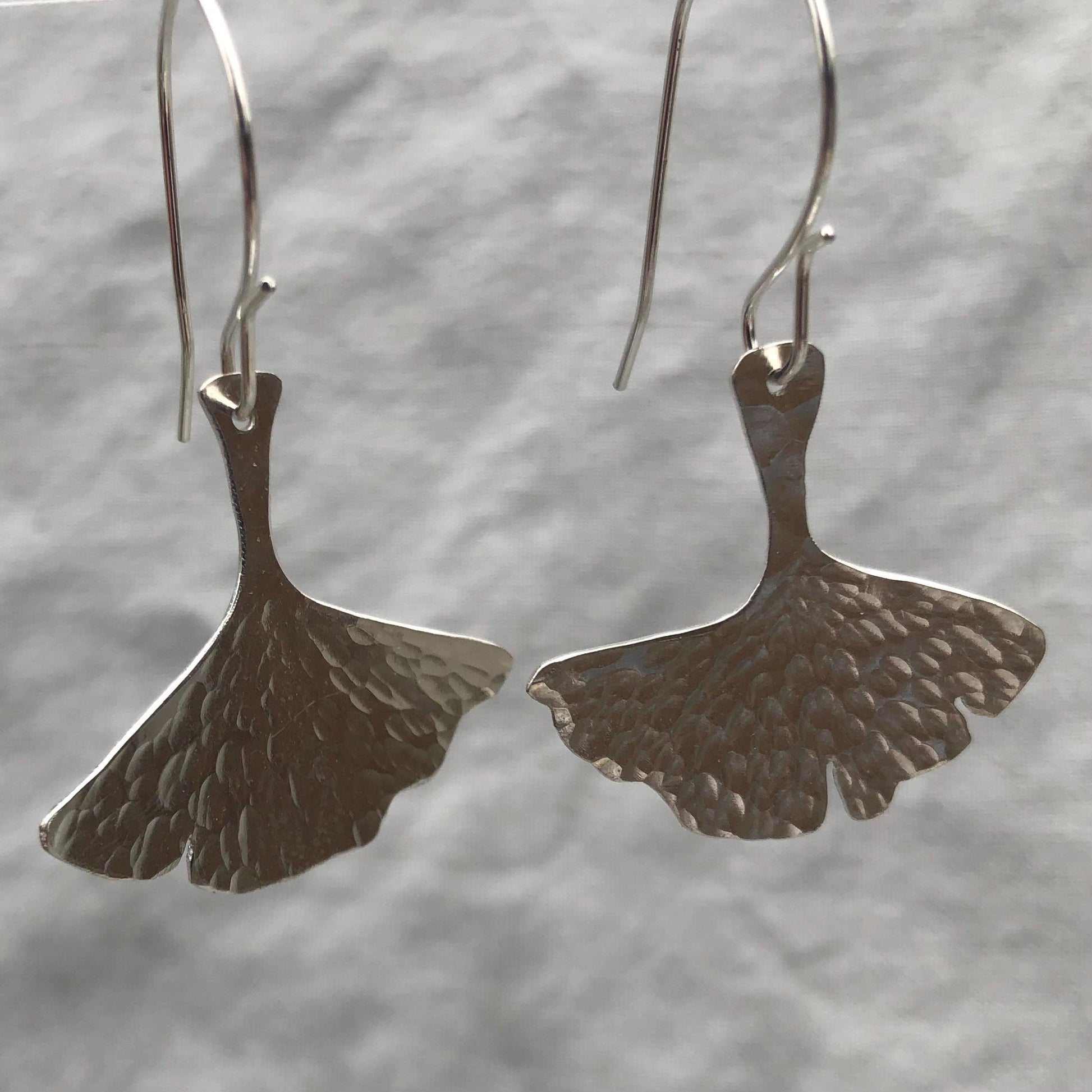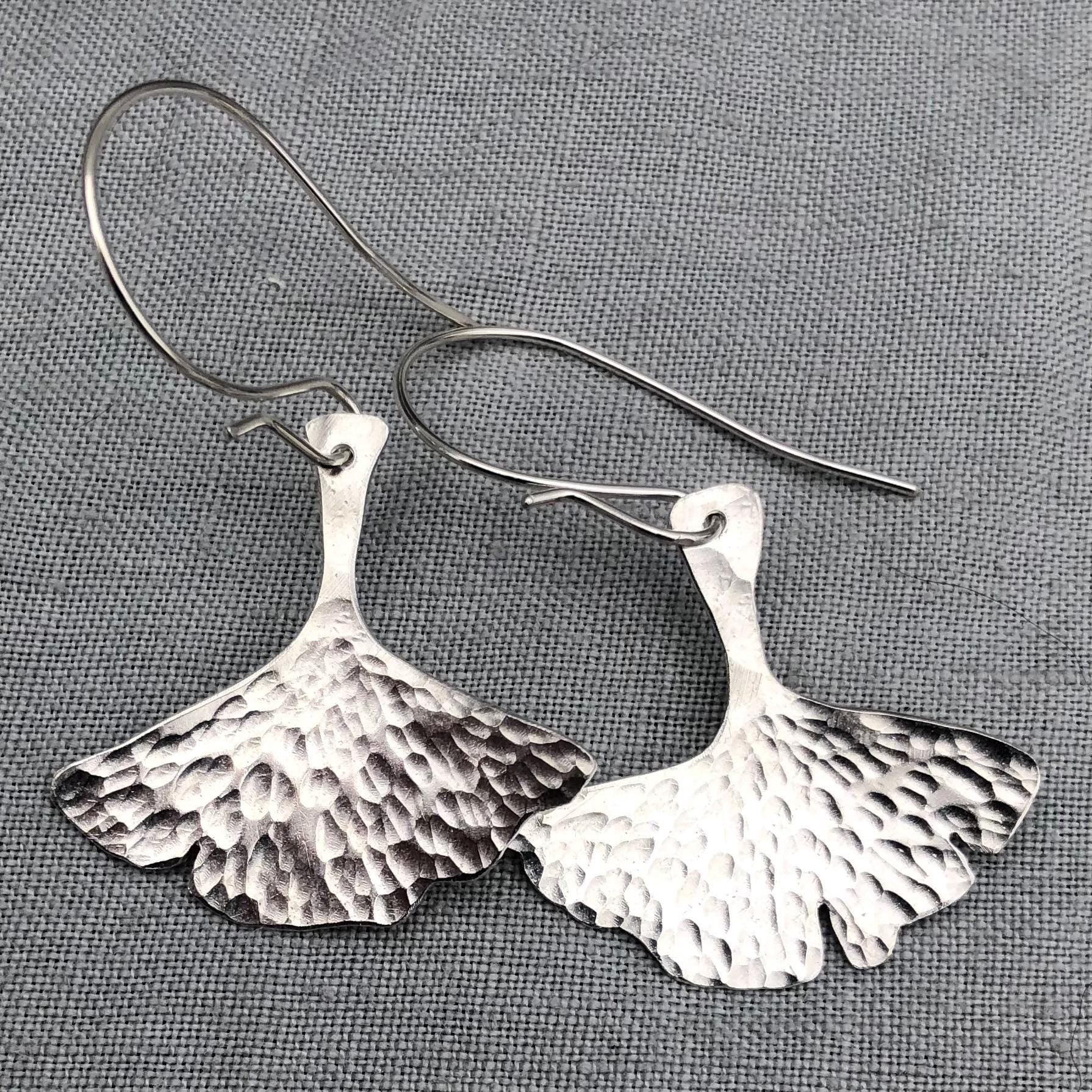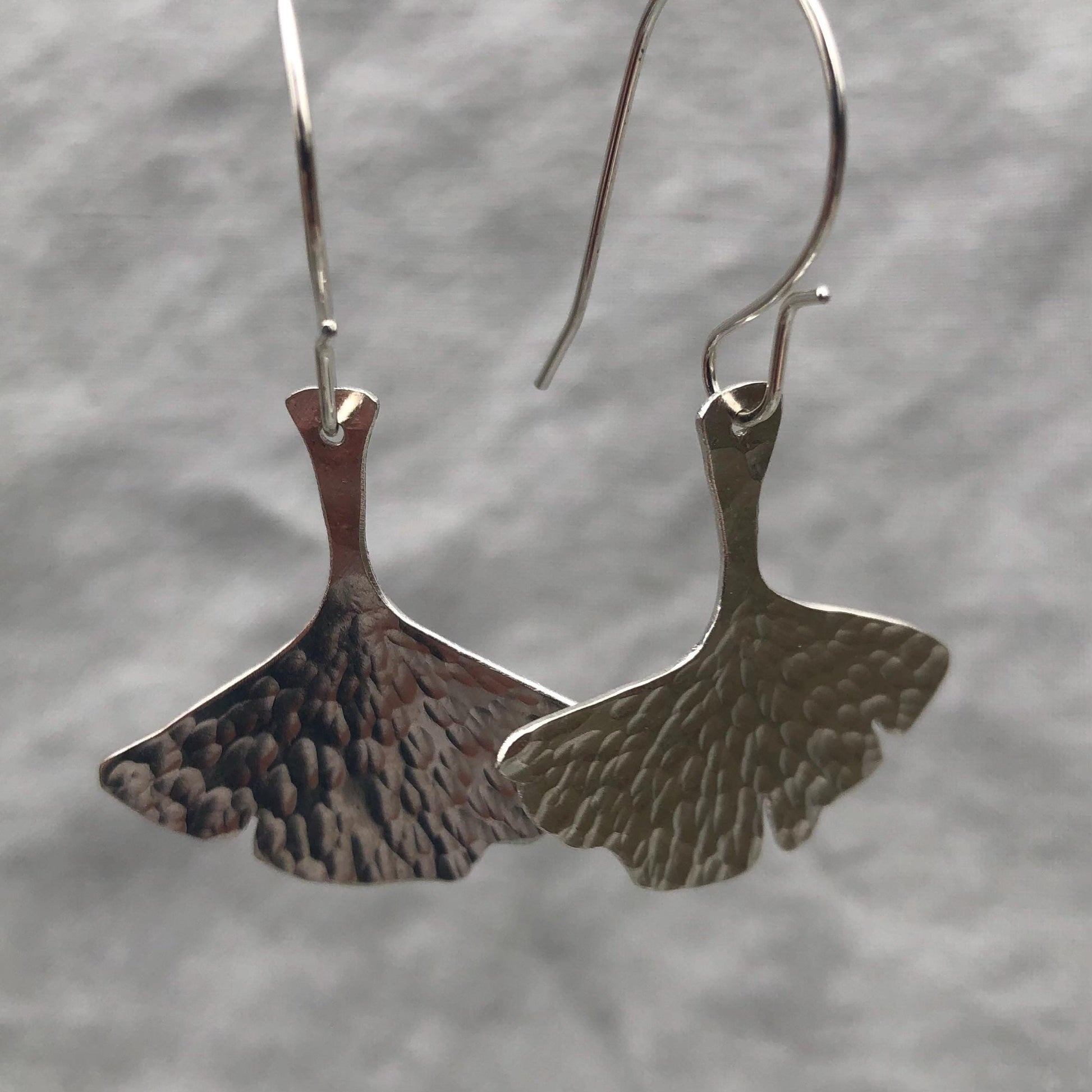 Ginkgo leaf earrings in hammered argentium sterling silver // Botanical earrings