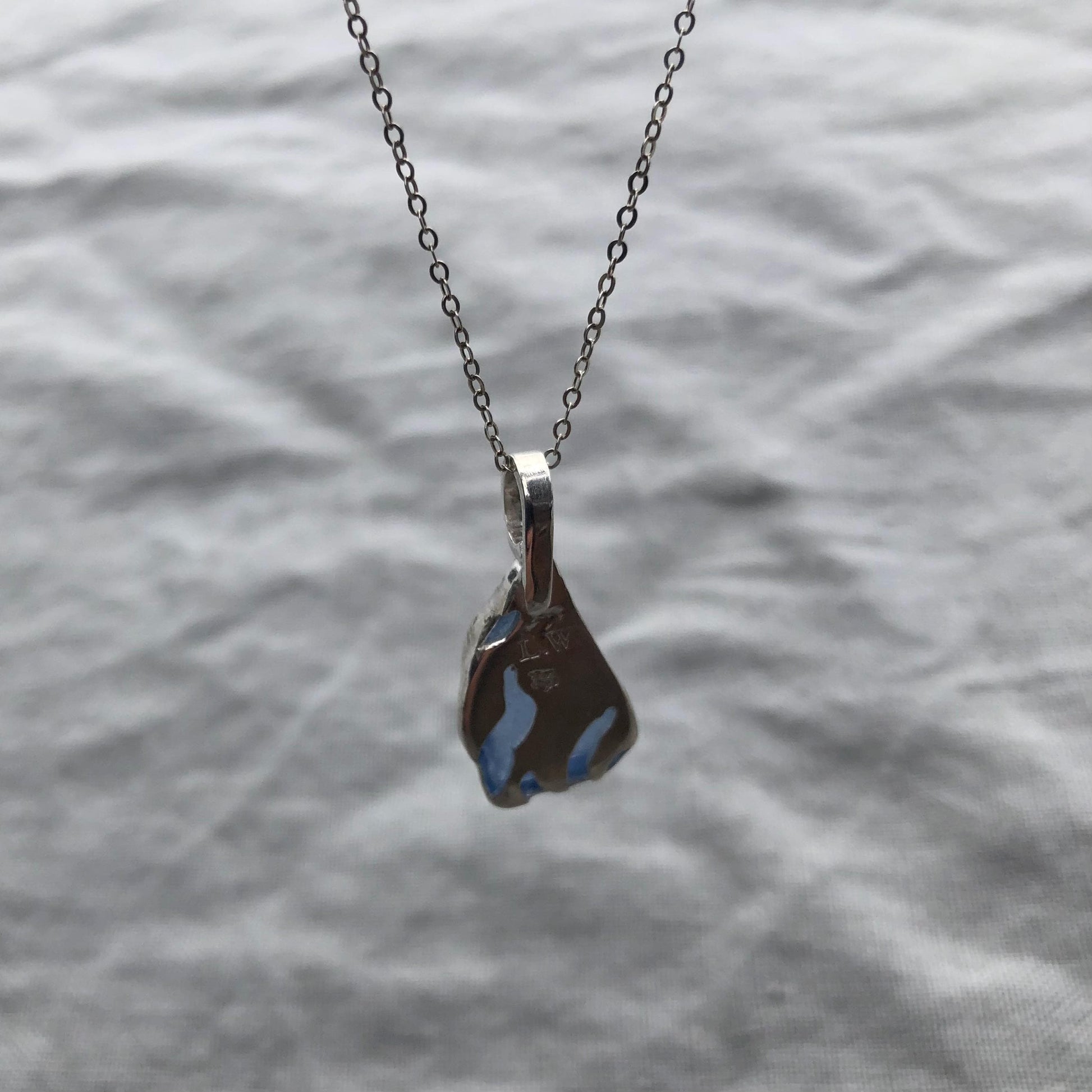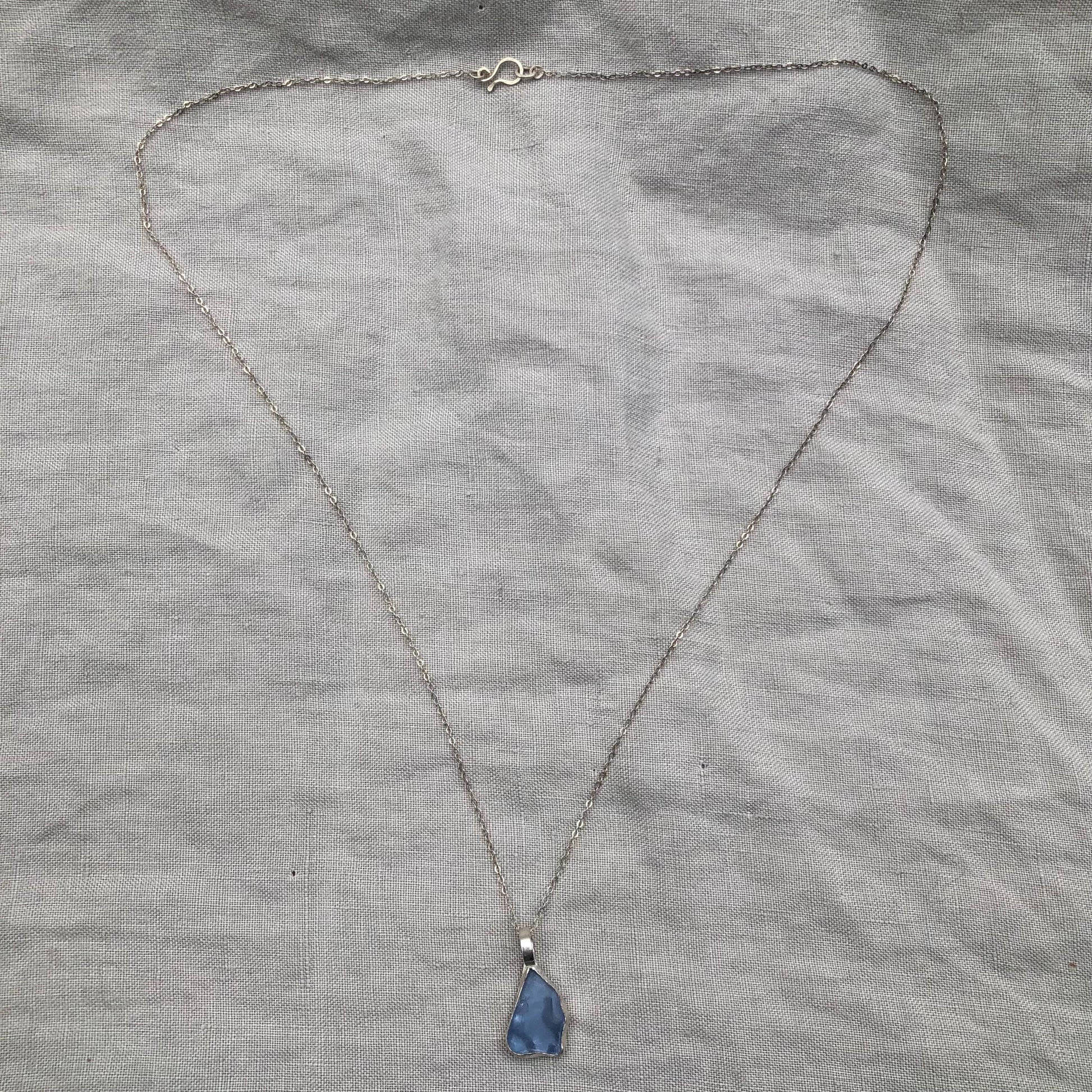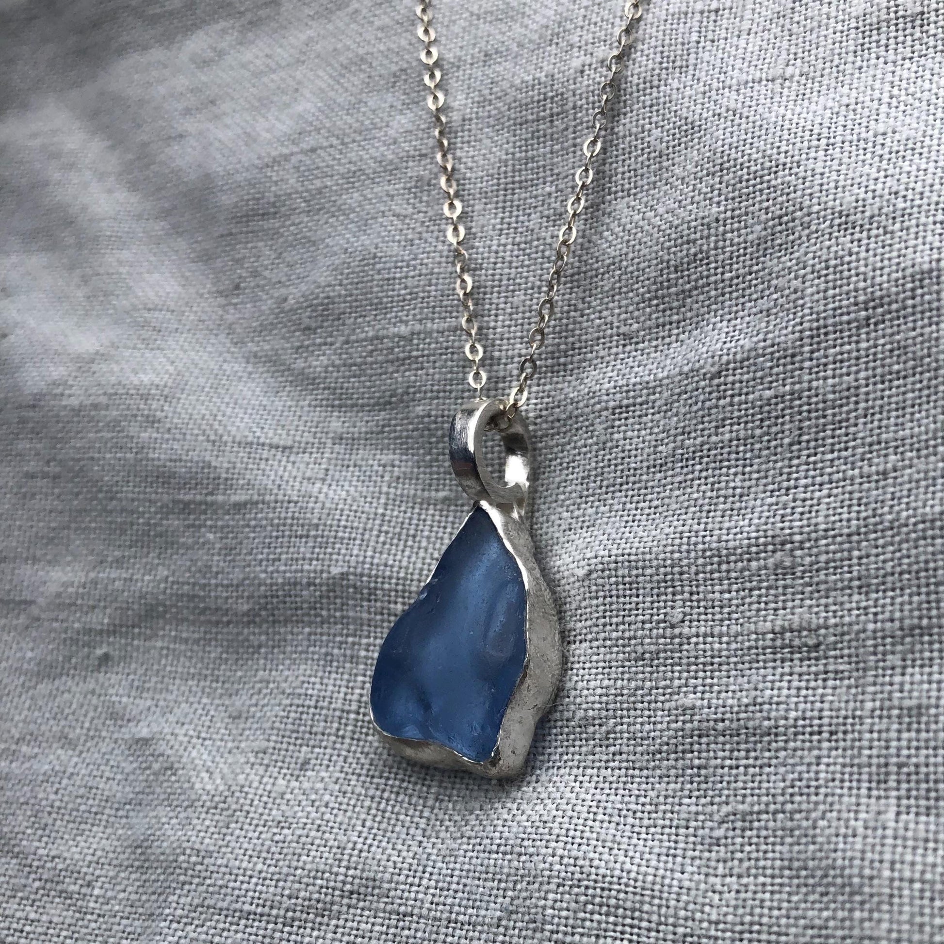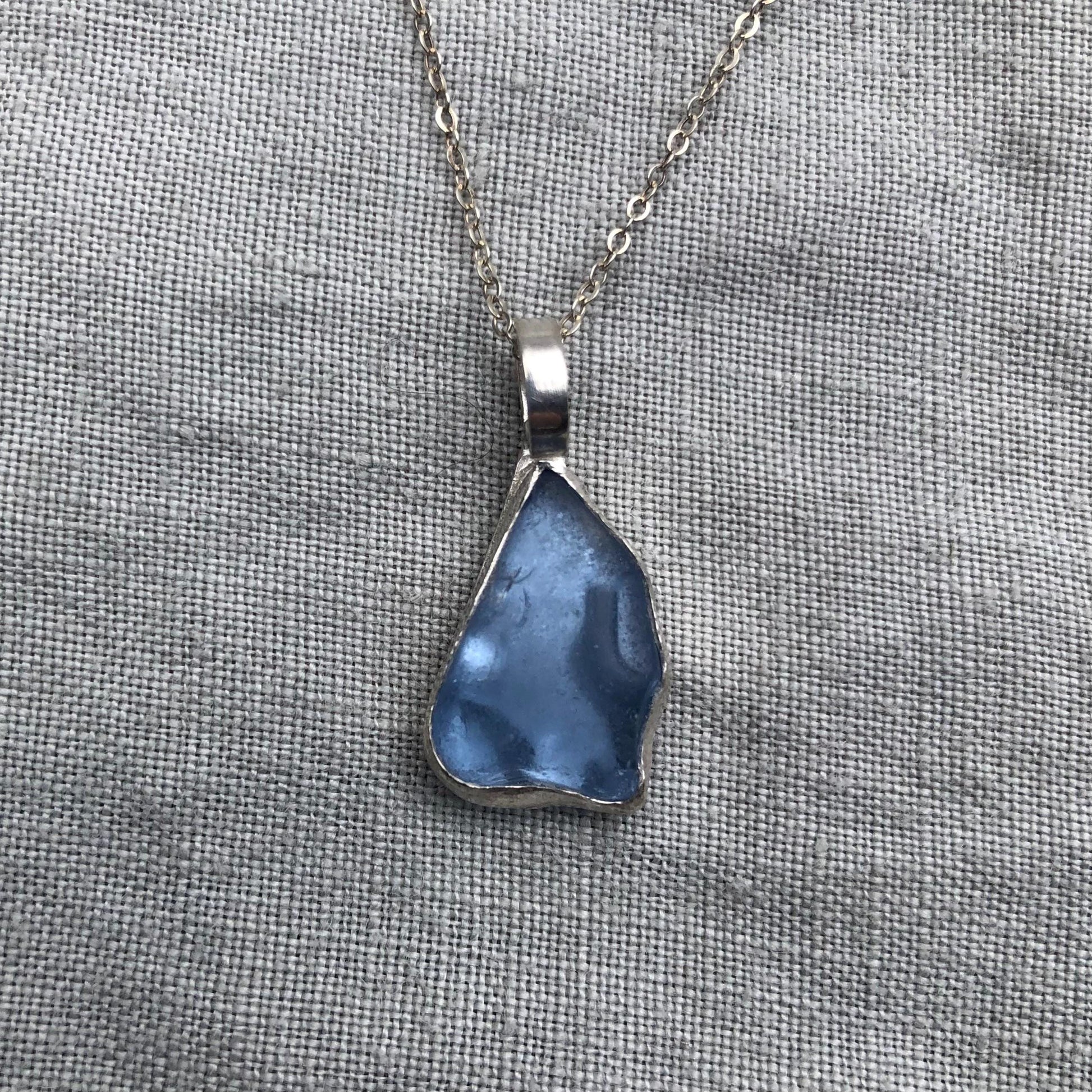 Light blue sea glass pendant in argentium sterling silver // Organic genuine beach glass necklace