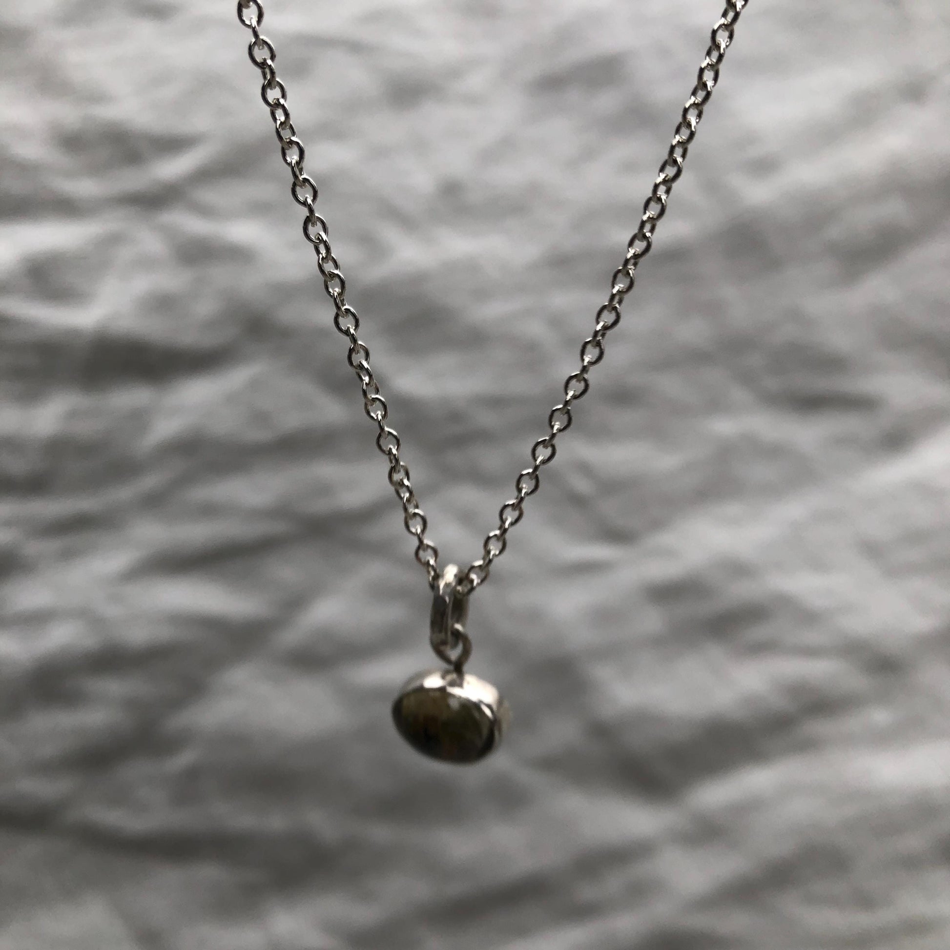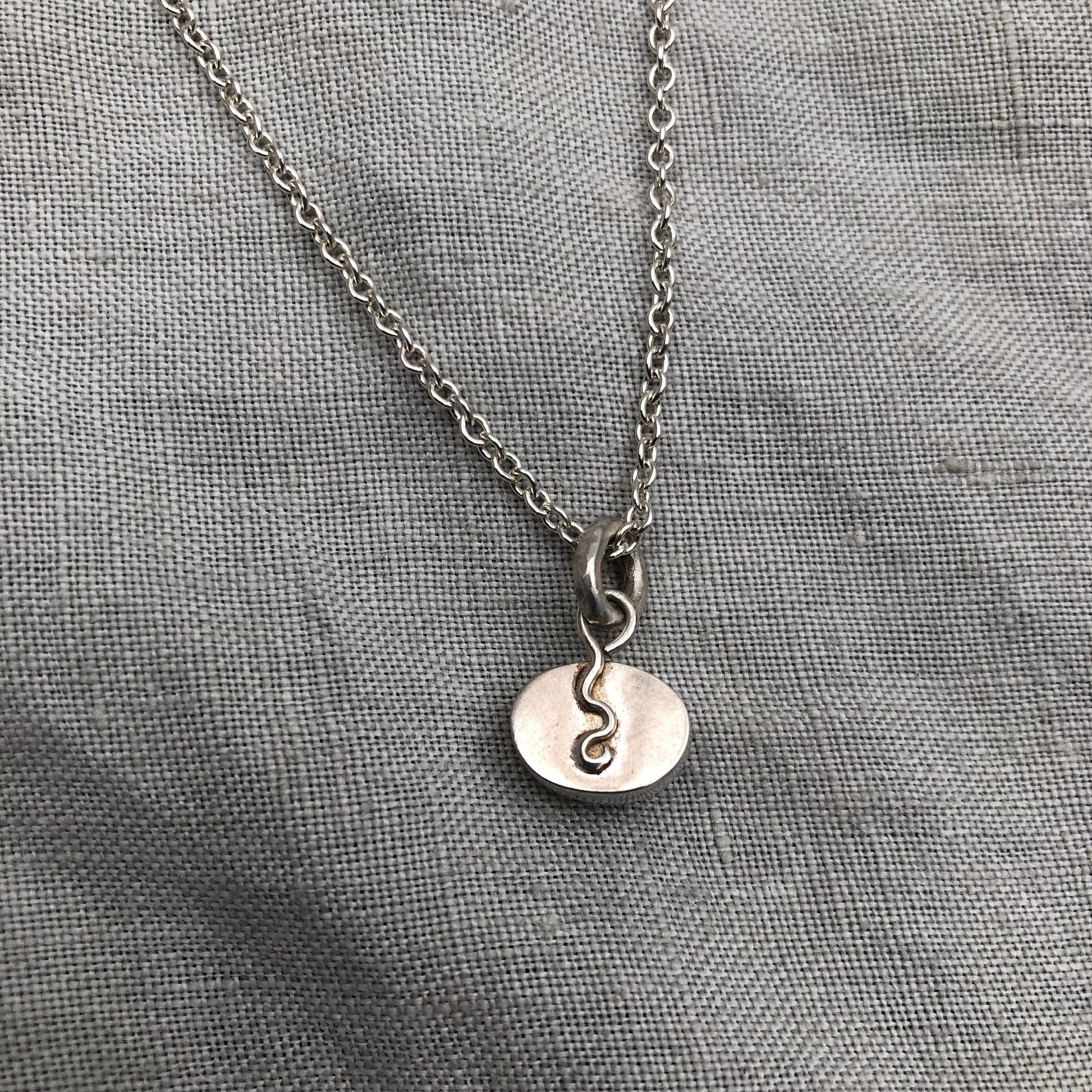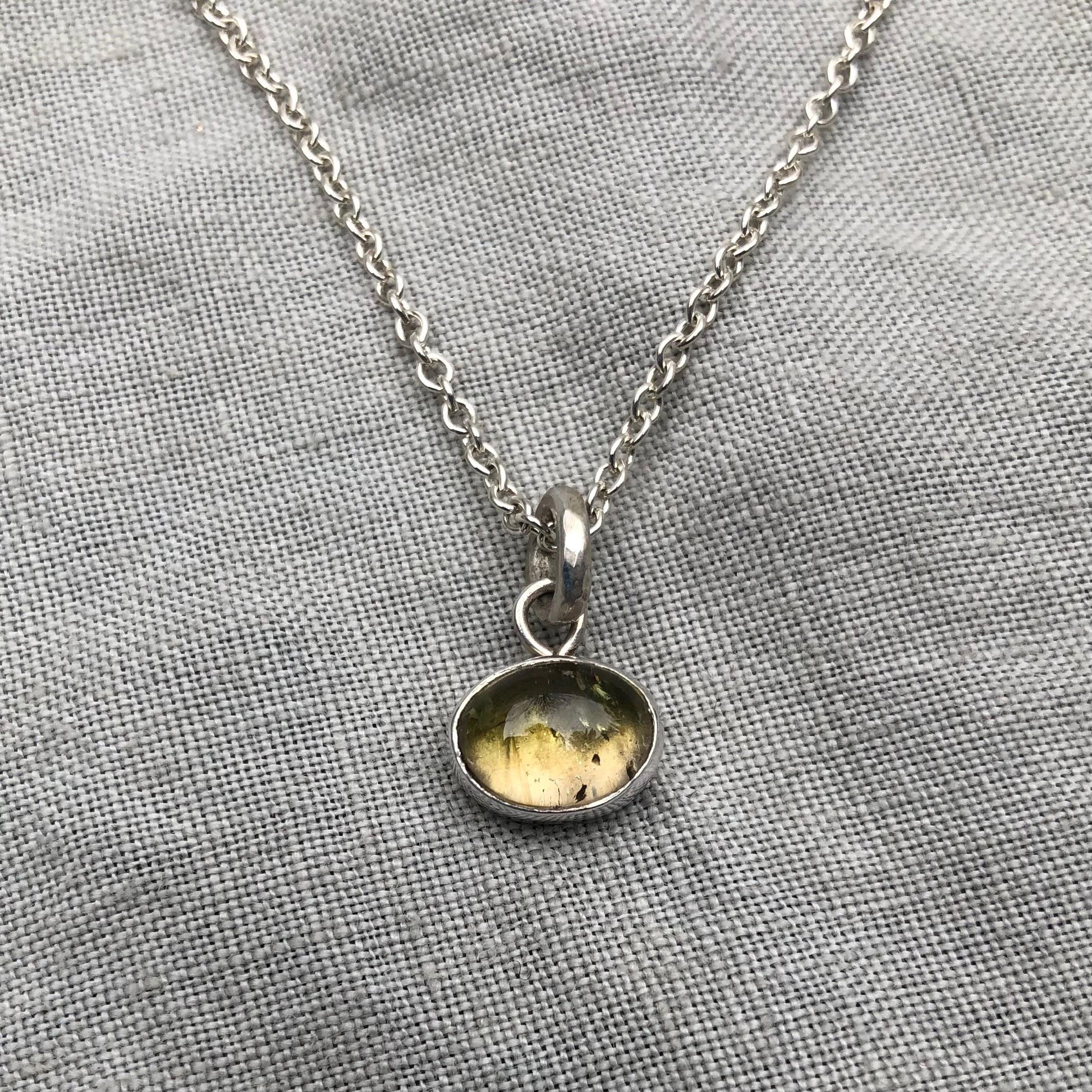 This necklace features a beautifully clear watermelon tourmaline cabochon. The stone is yellow-green at the top and shades to pink at the bottom. (Because the stone is so transparent and the backing is so reflective, it's difficult to photograph the color accurately. What looks like dark patches in the stone are actually reflections of the camera.) Set simply in argentium sterling silver with a fine silver bezel and a little squiggle on the back. Handmade clasp. Tourmaline is one of the birthstones for October.