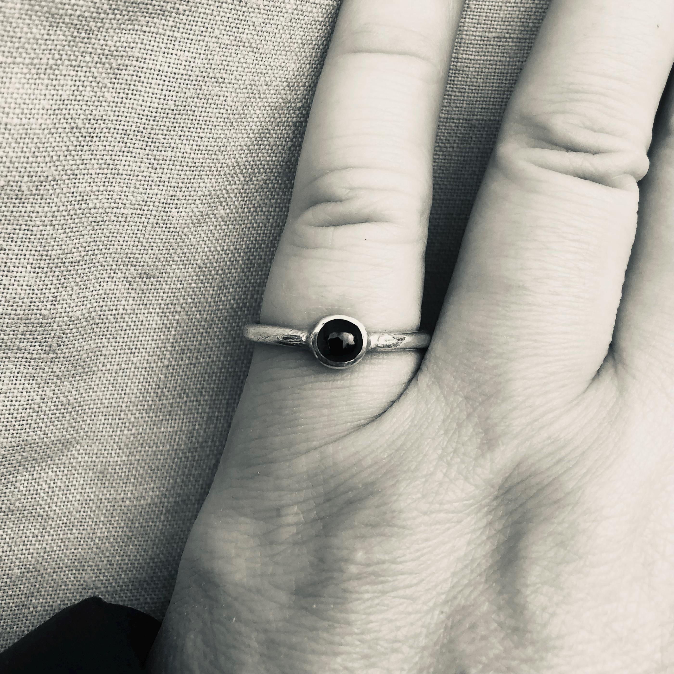Natural earth-mined sapphire cabochon ring in argentium sterling silver // U.S. size 7 1/4
