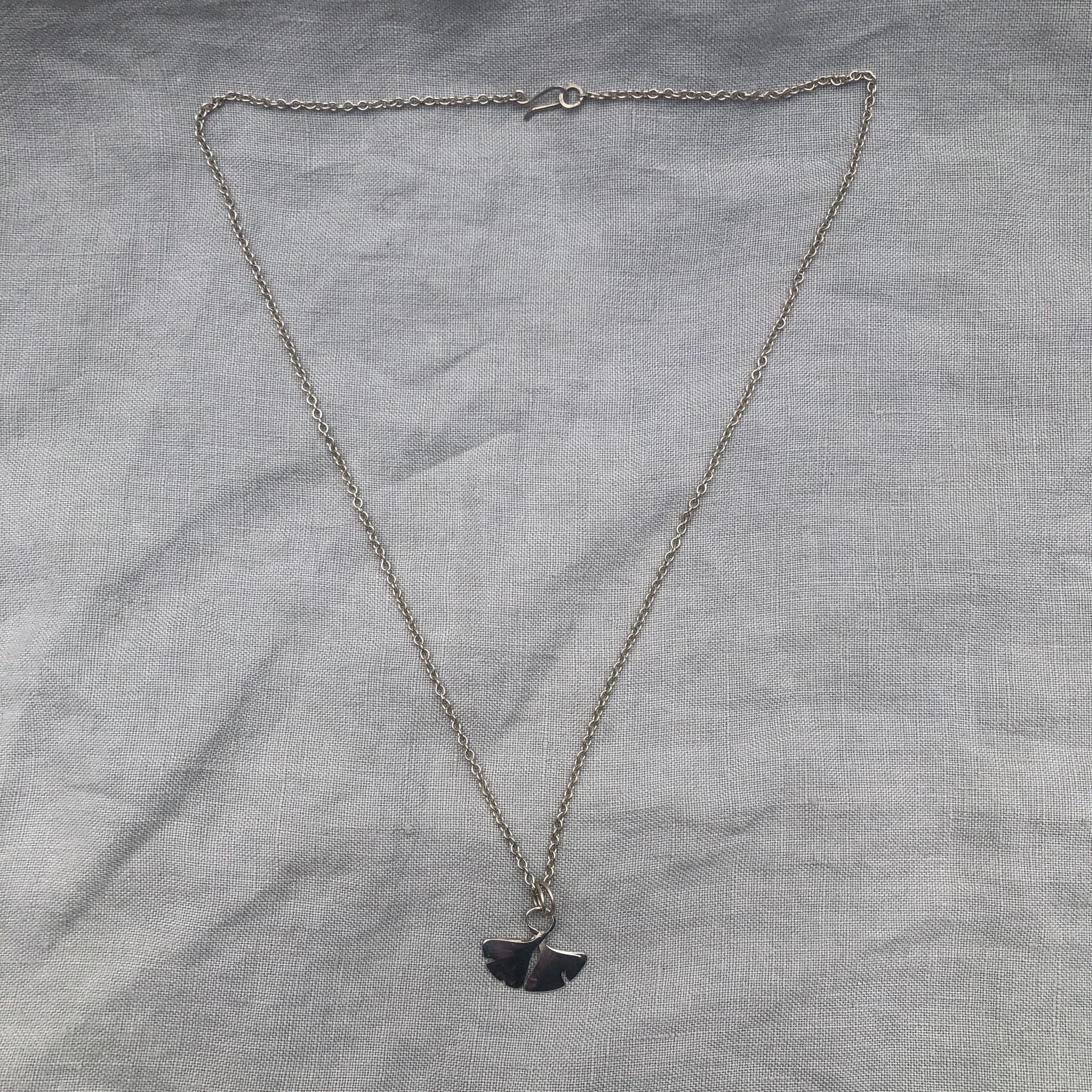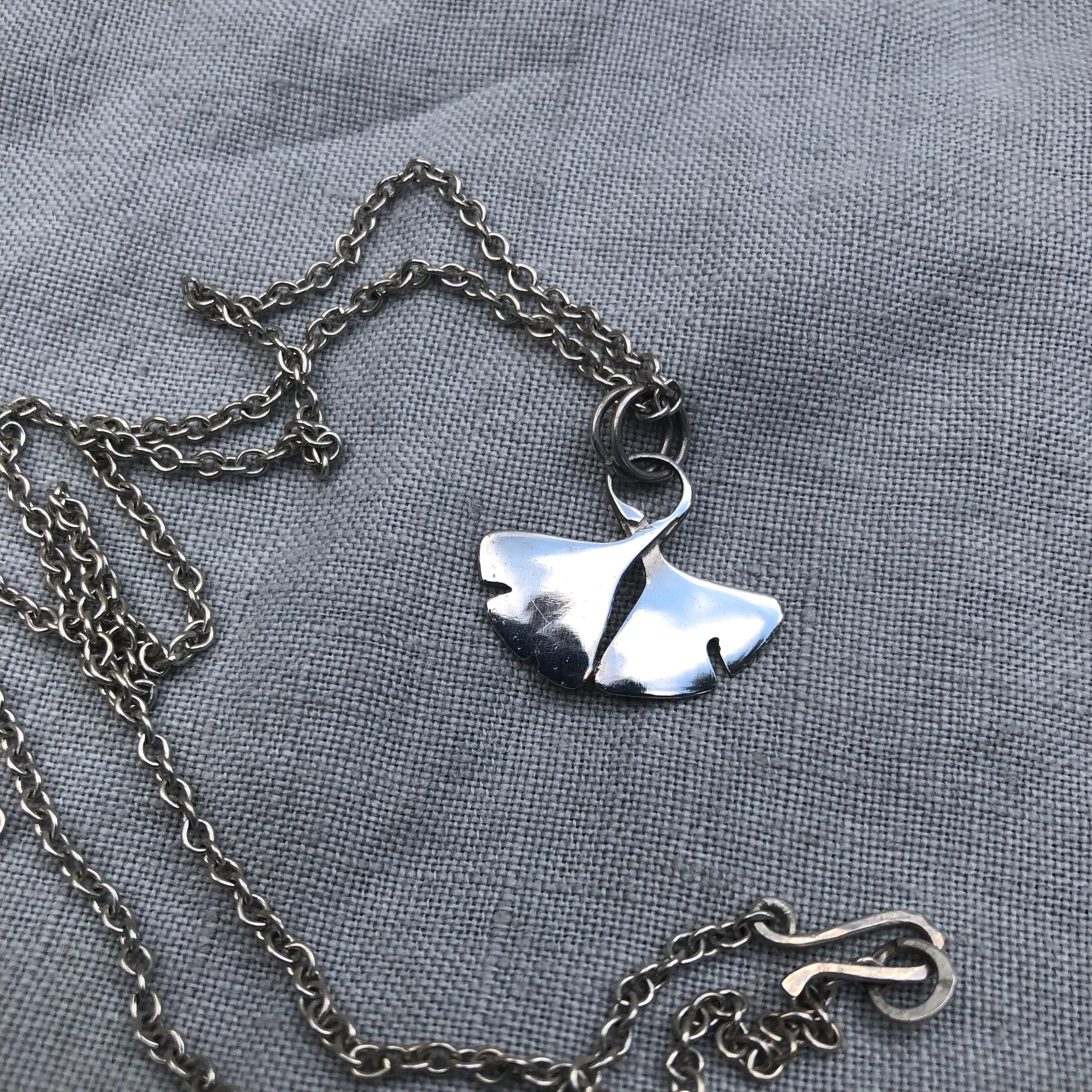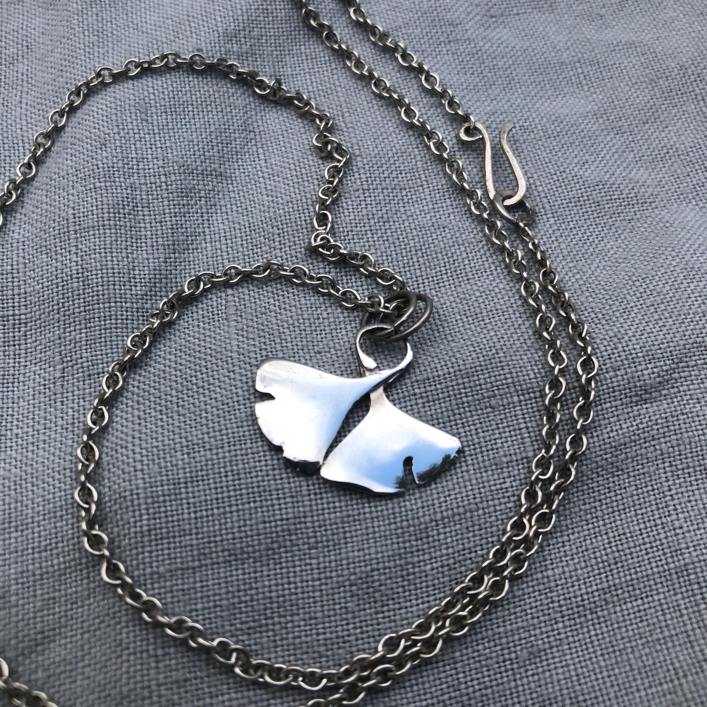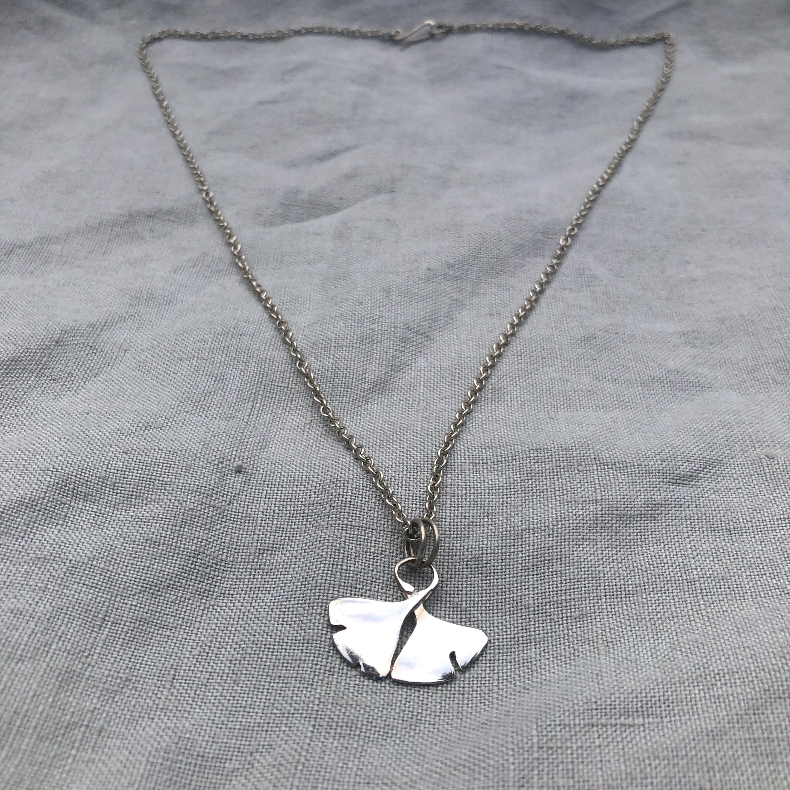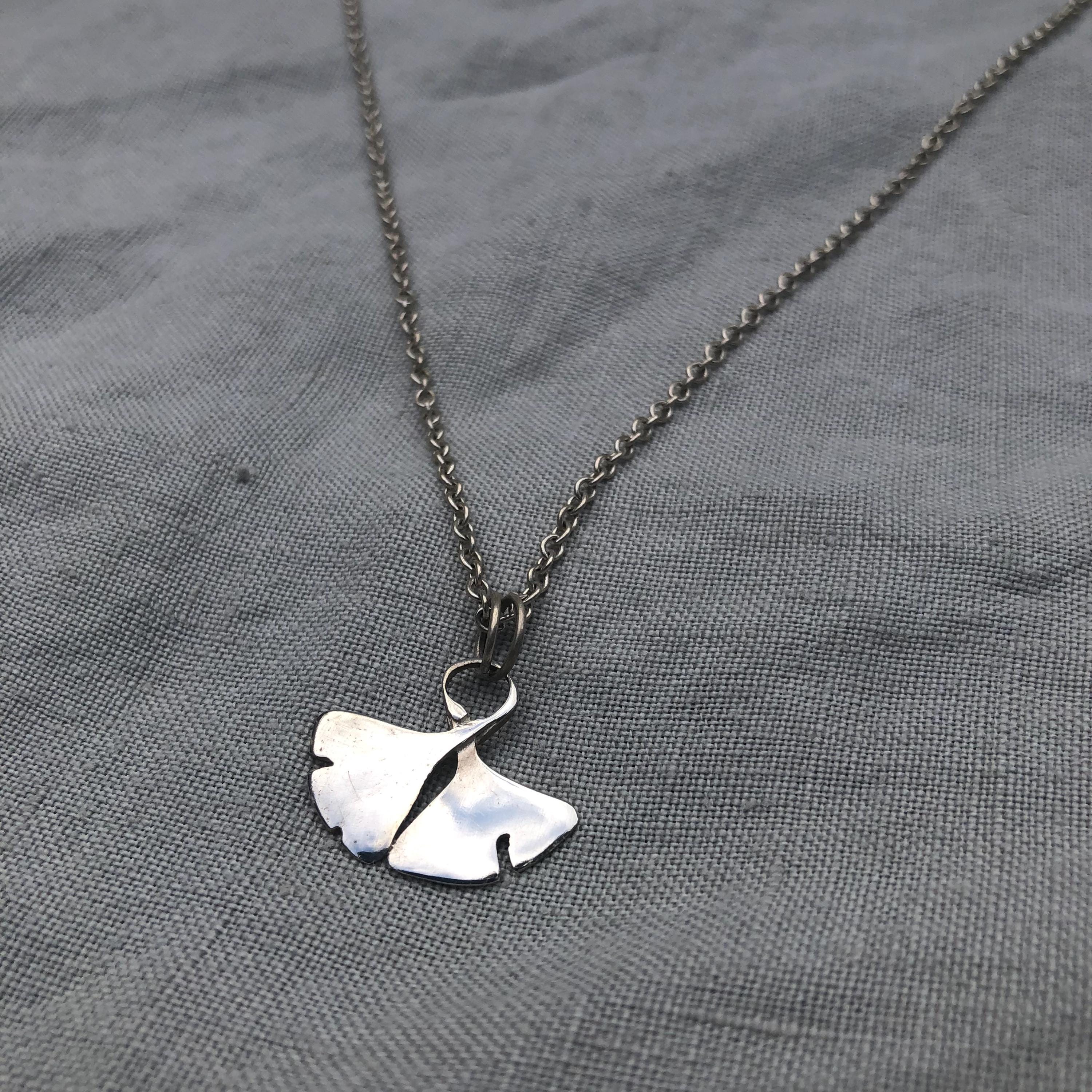 Ginkgo leaf pendant in argentium sterling silver