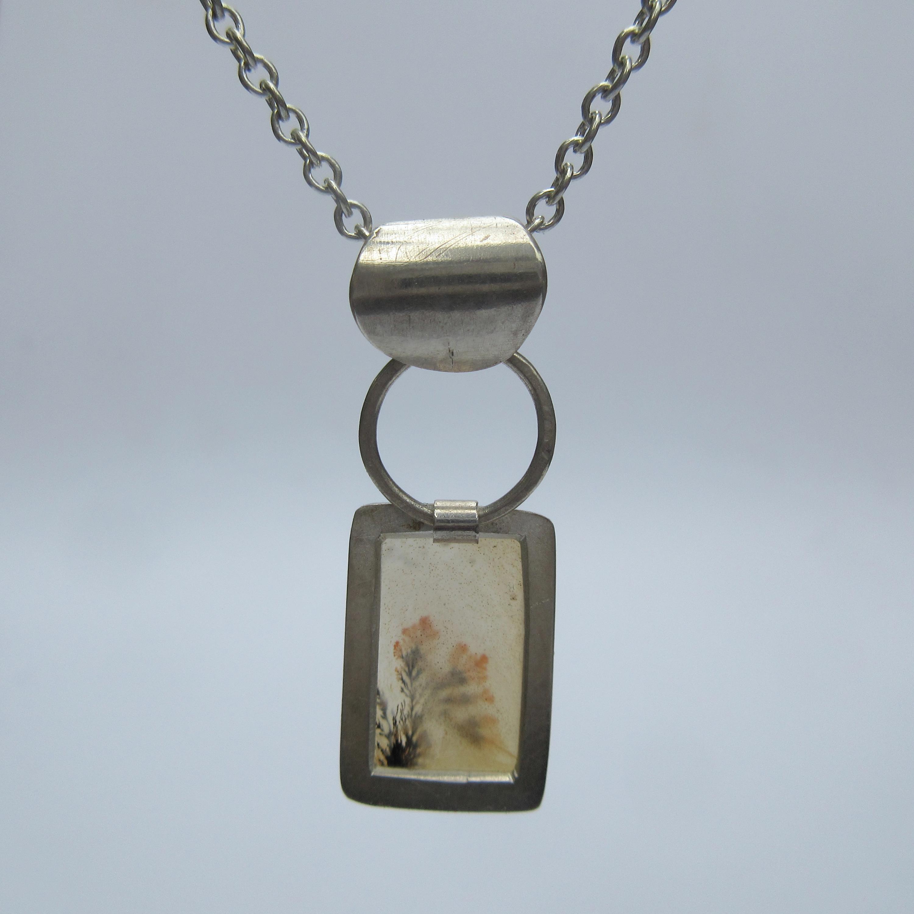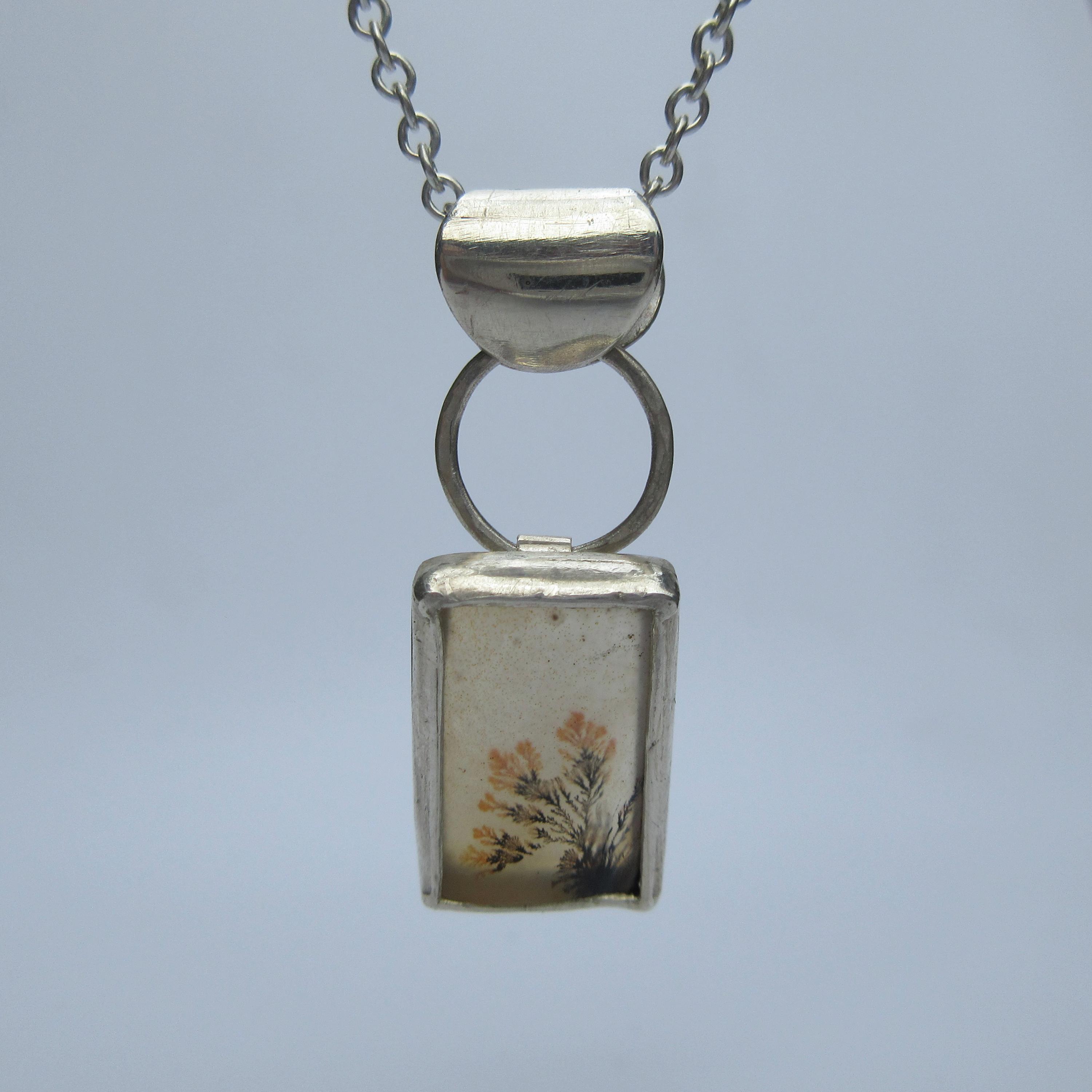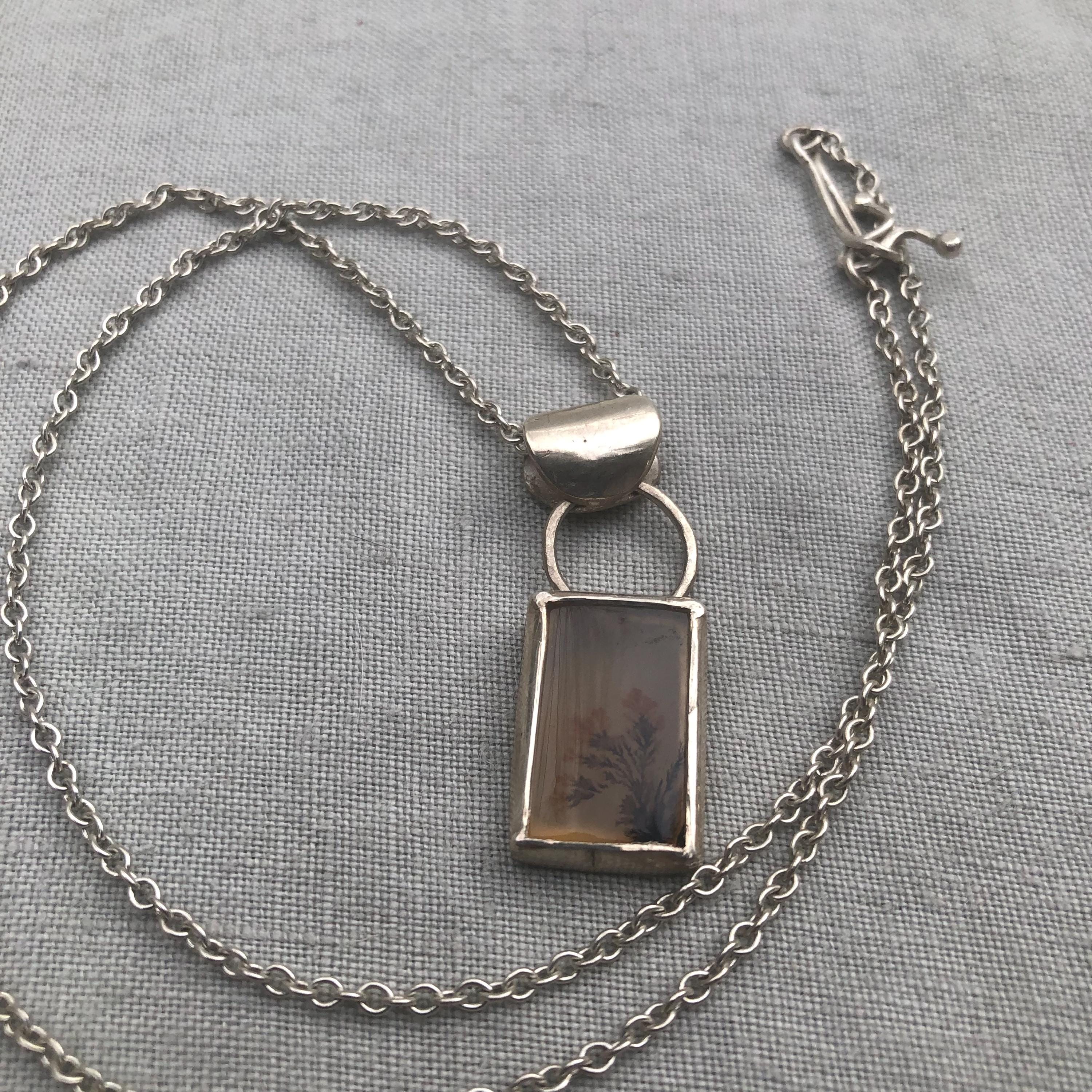 Dendritic agate pendant in argentium sterling silver // "Disappearing" dendritic agate pendant