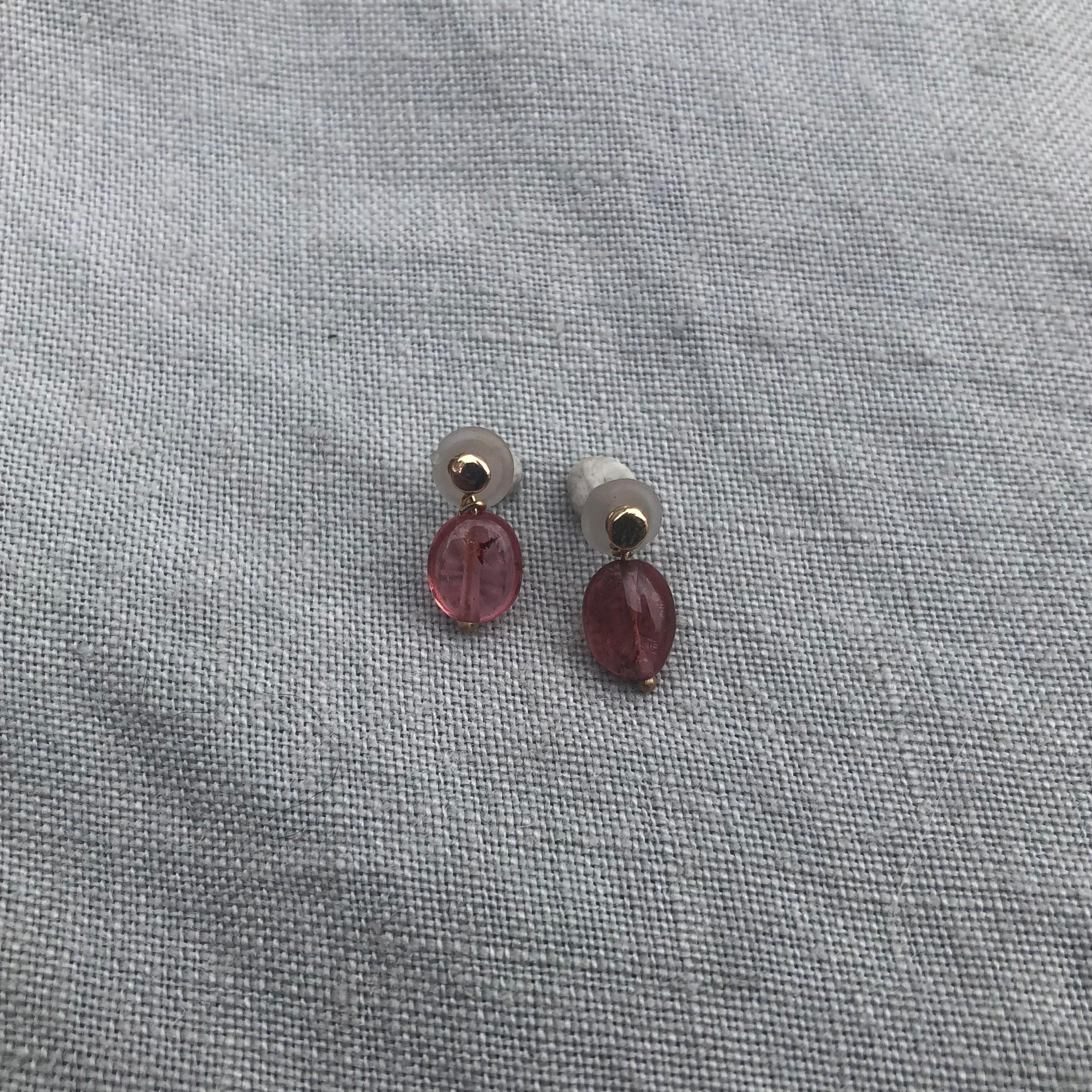 Solid gold stud earrings with removable pink tourmaline gemstones