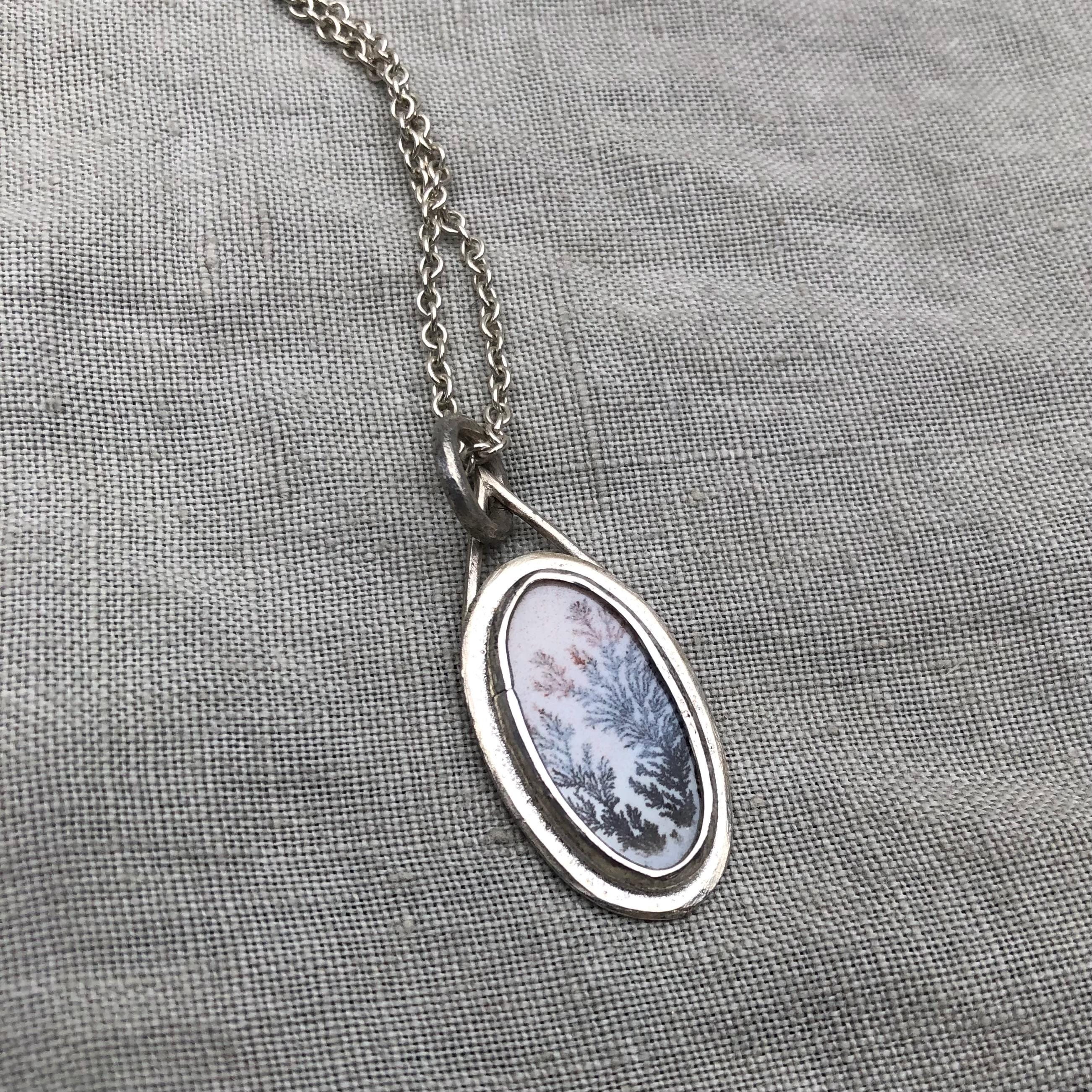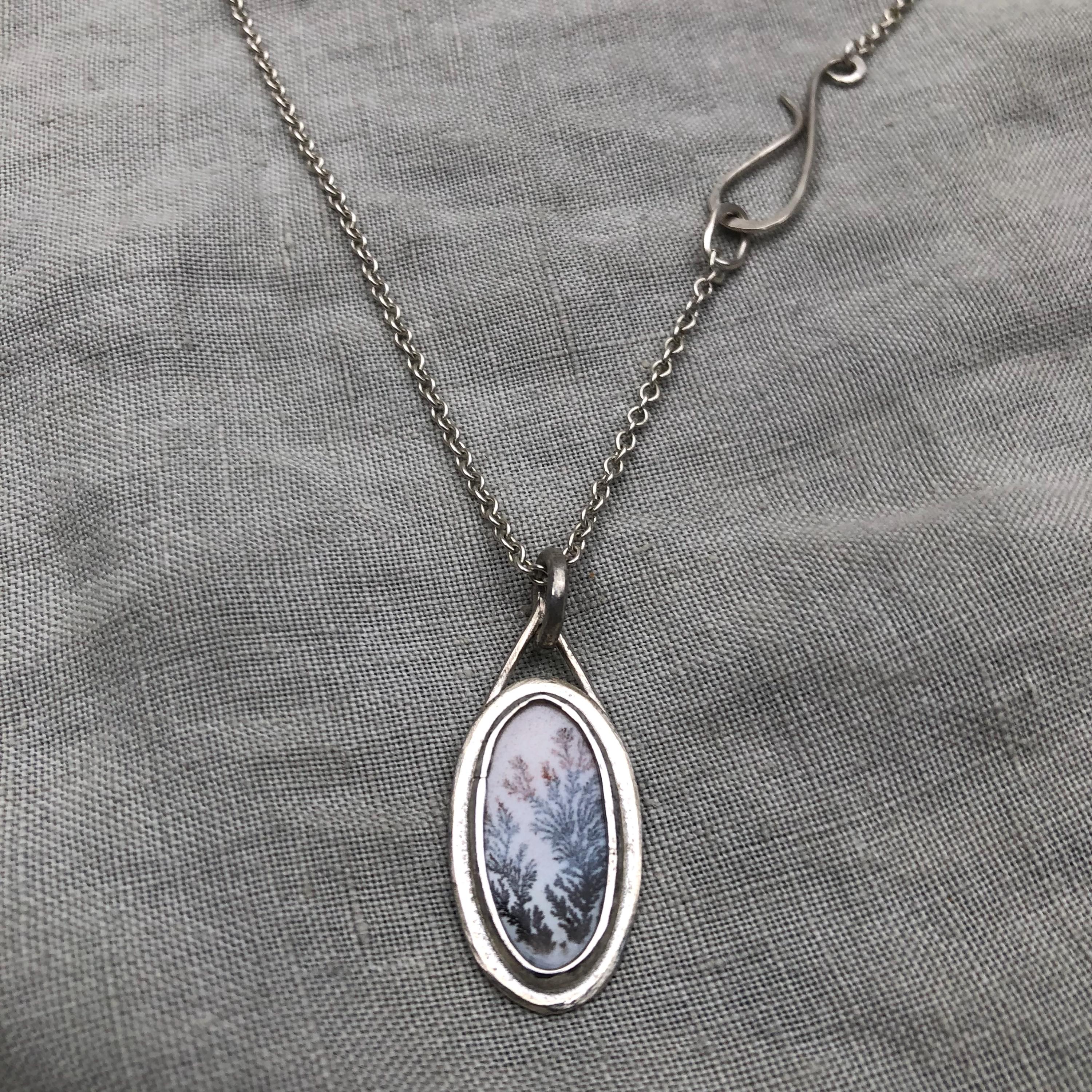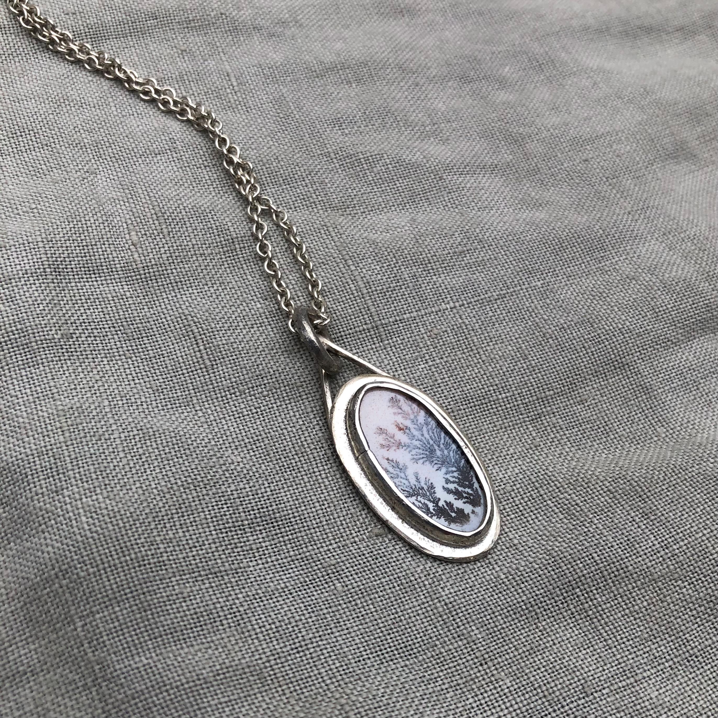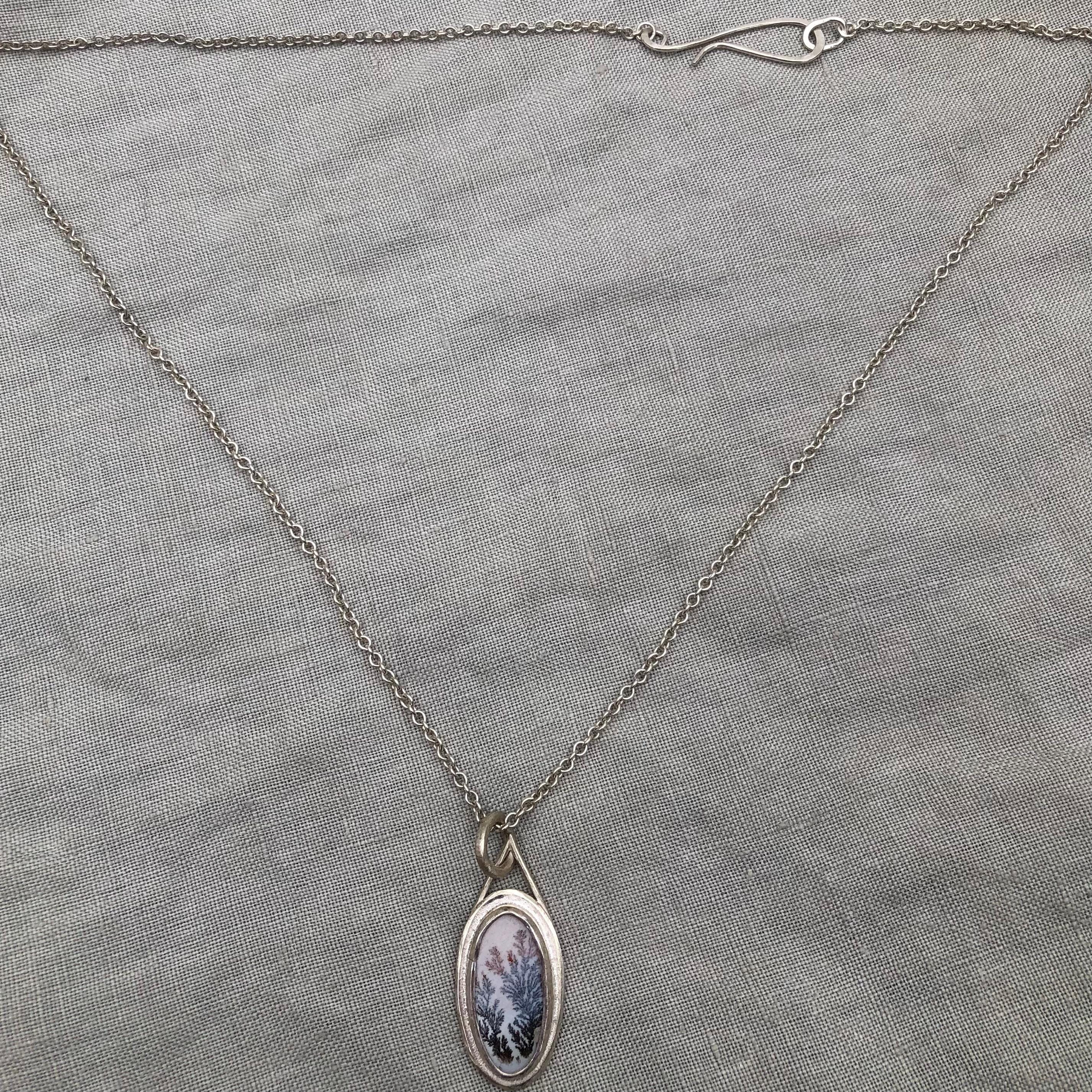 Milky dendritic agate necklace in argentium sterling silver