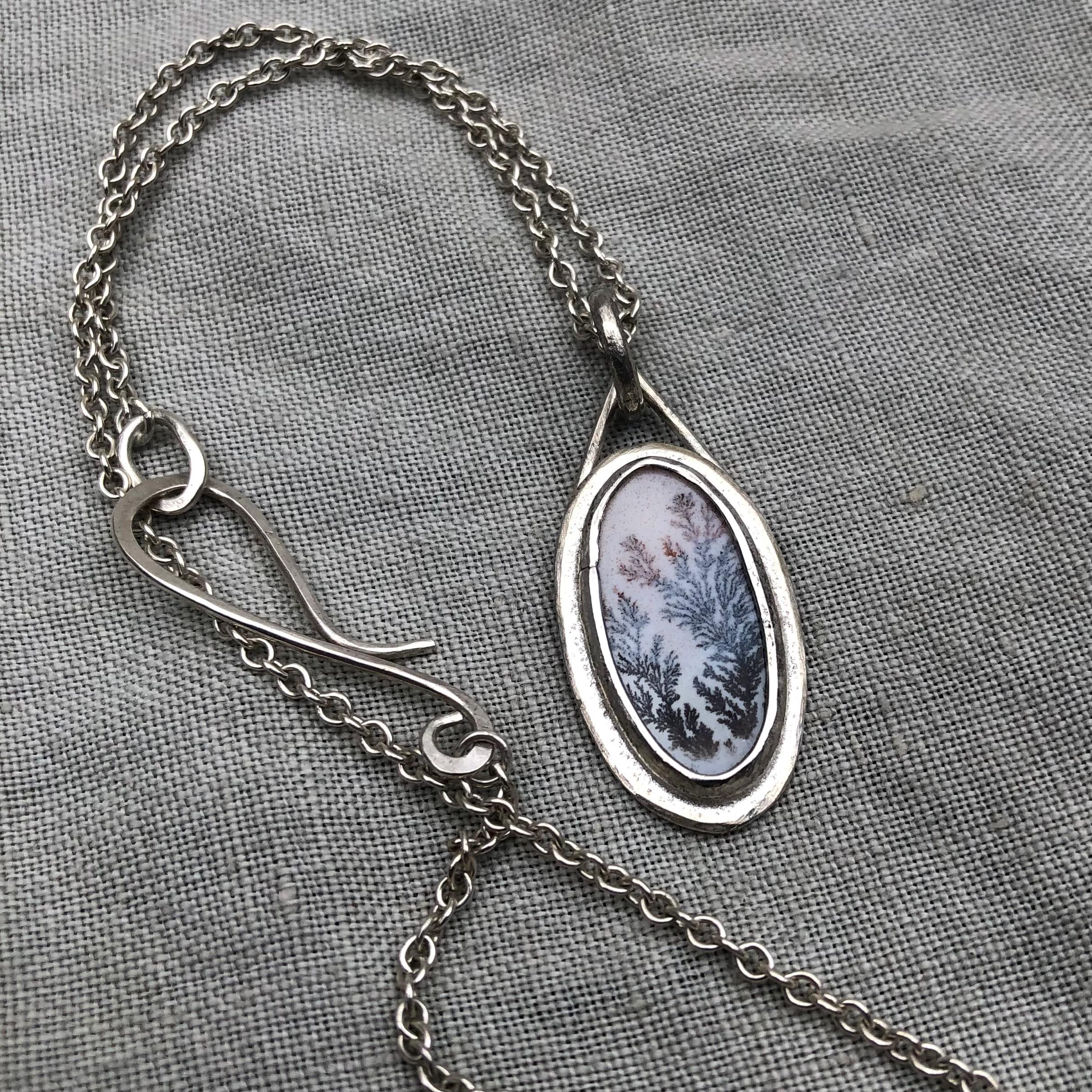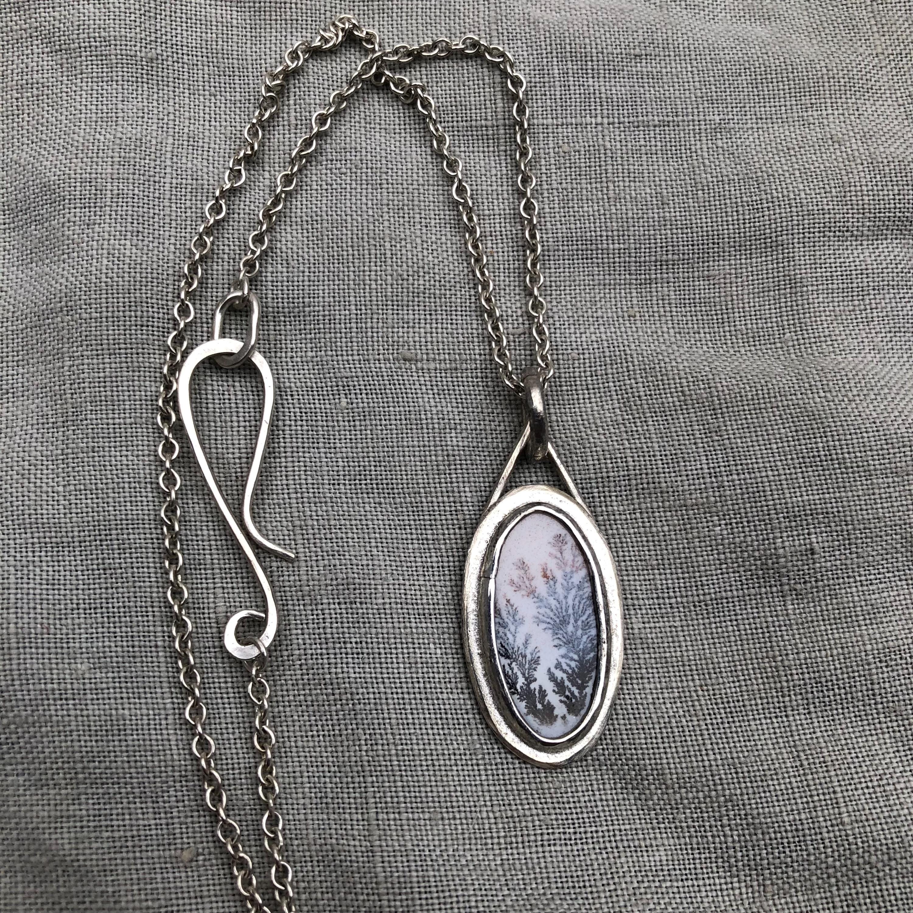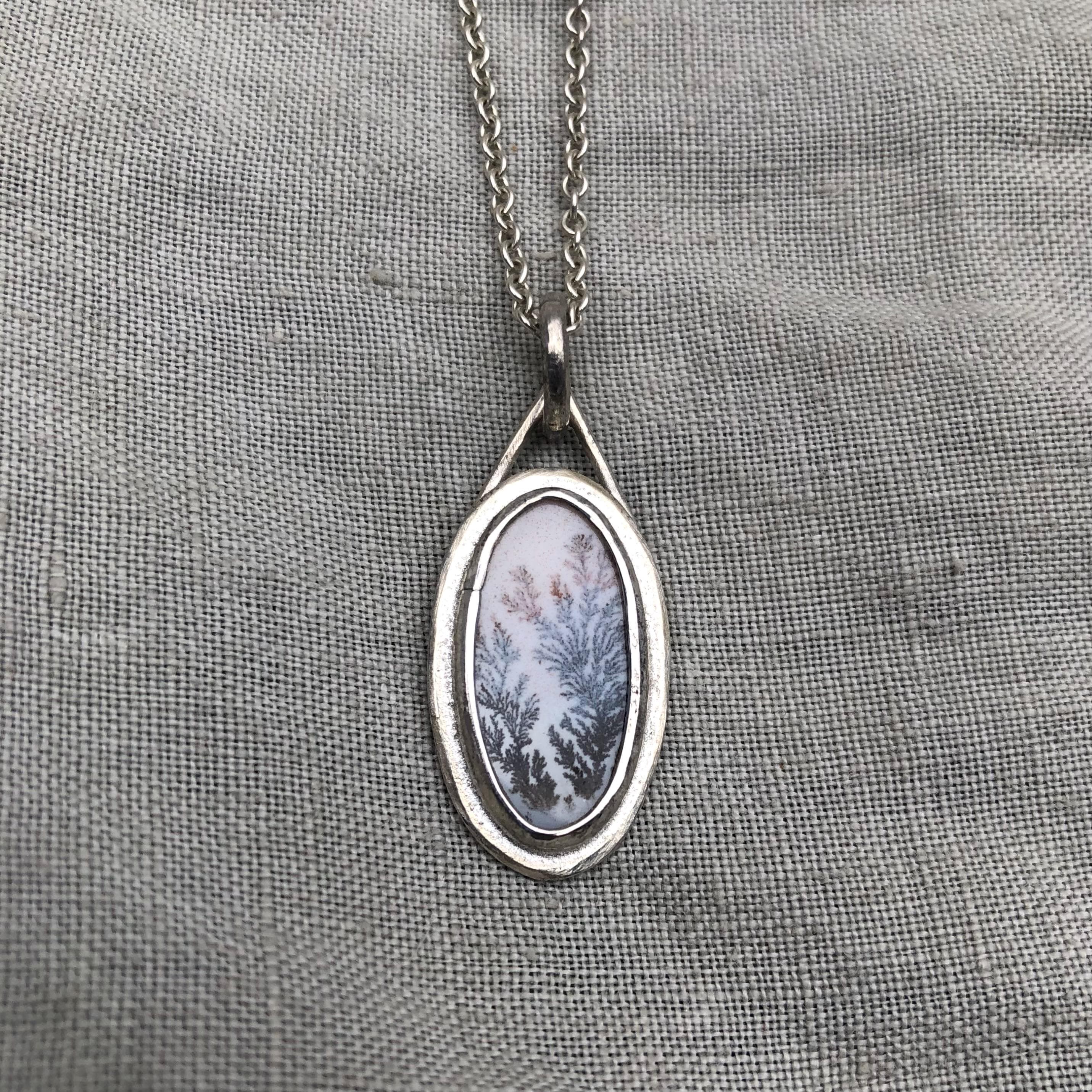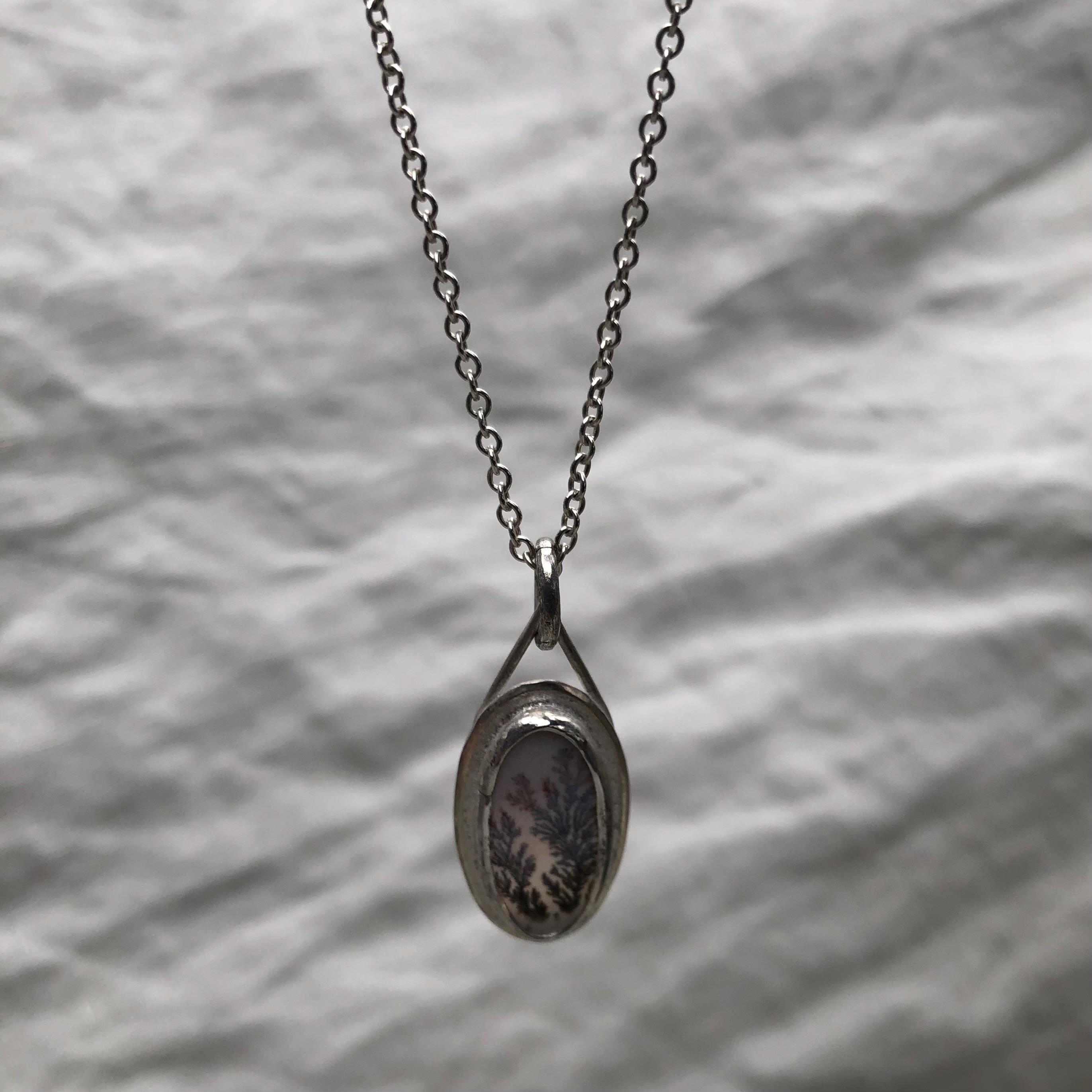 Milky dendritic agate necklace in argentium sterling silver