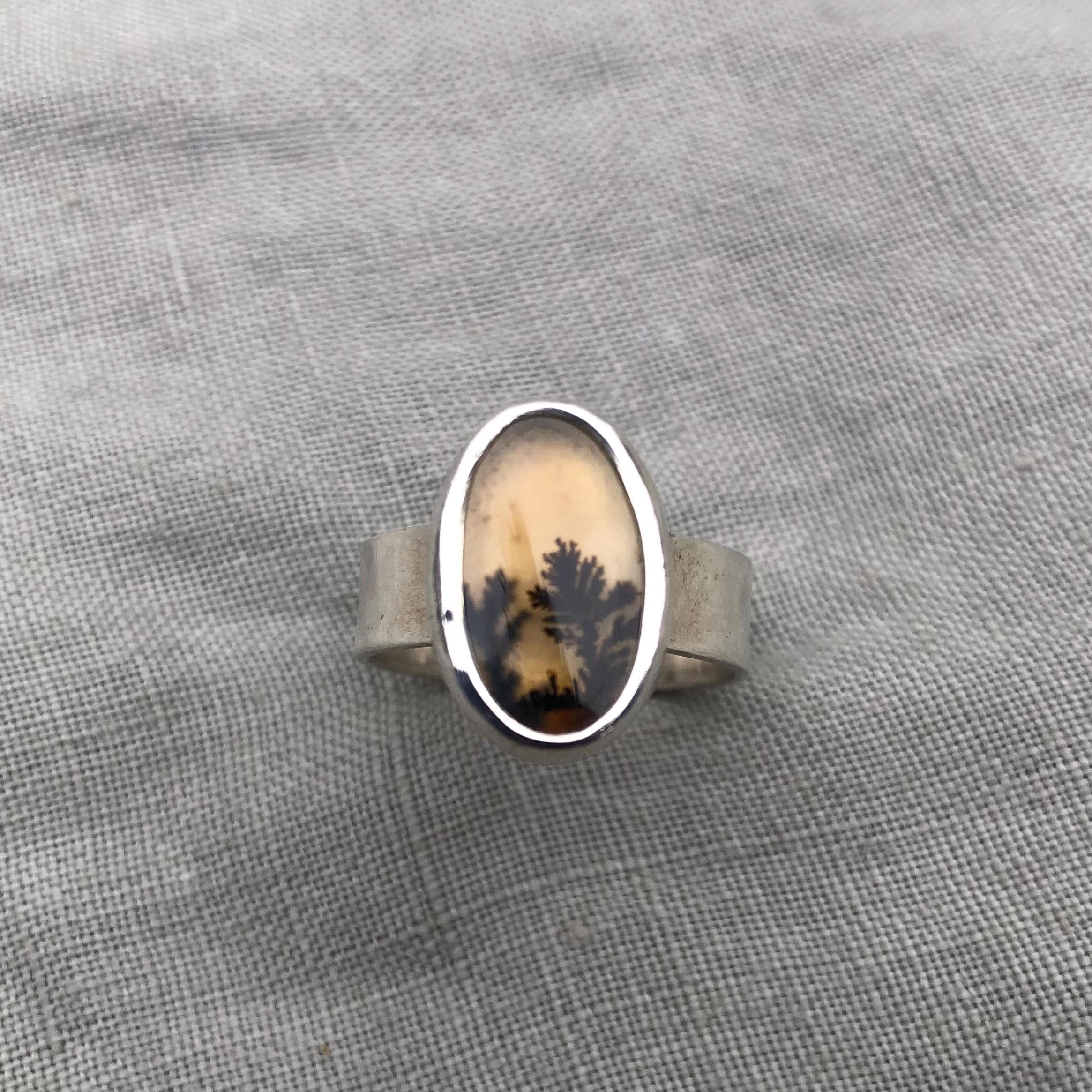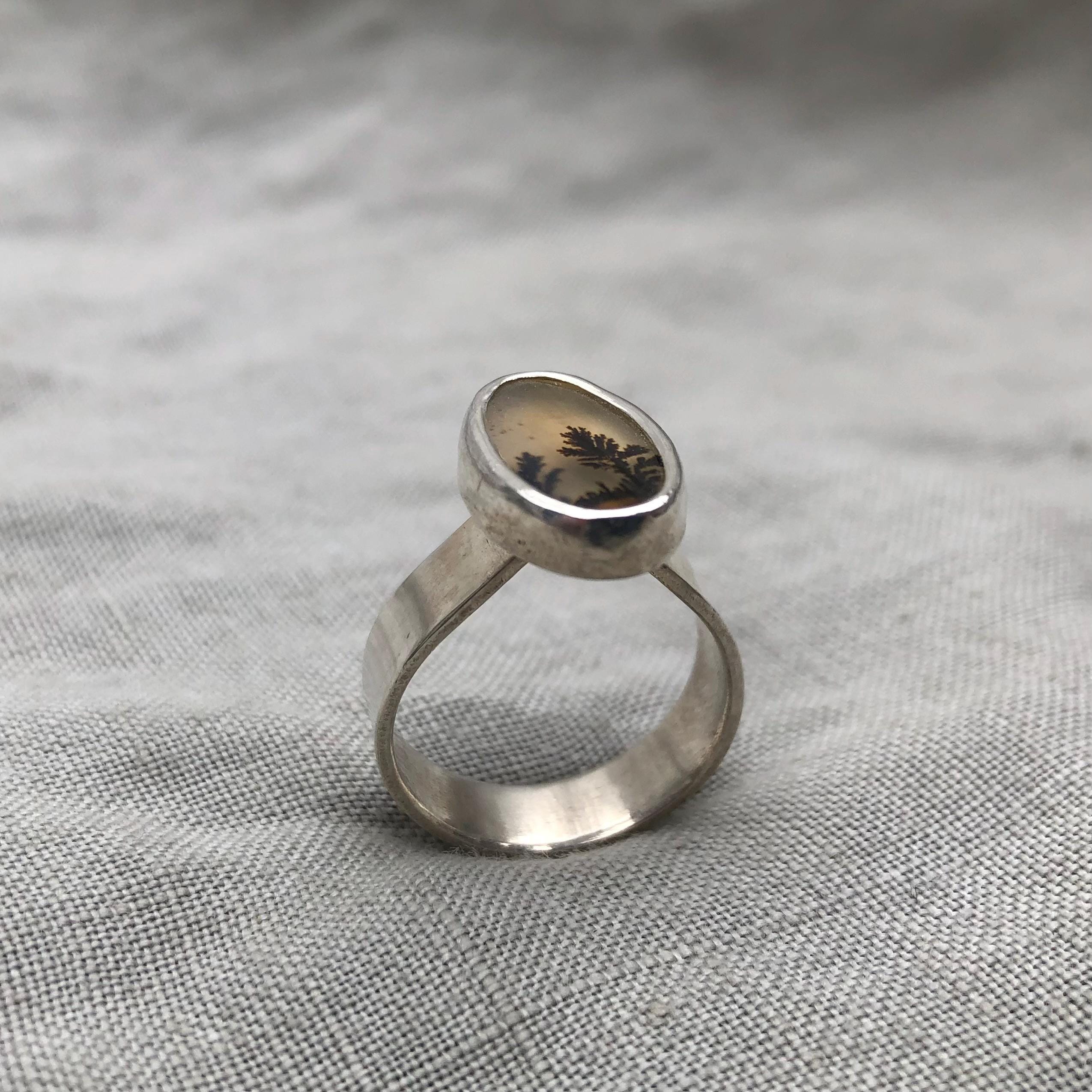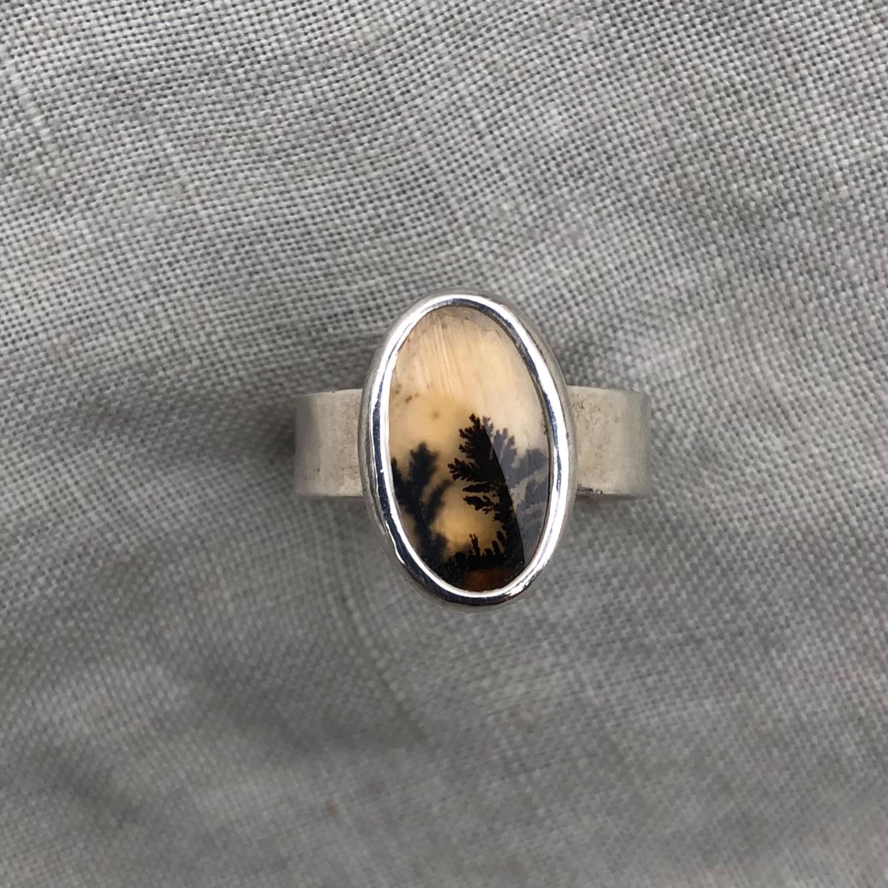 Dendritic agate ring in argentium sterling silver, size 7 1/4