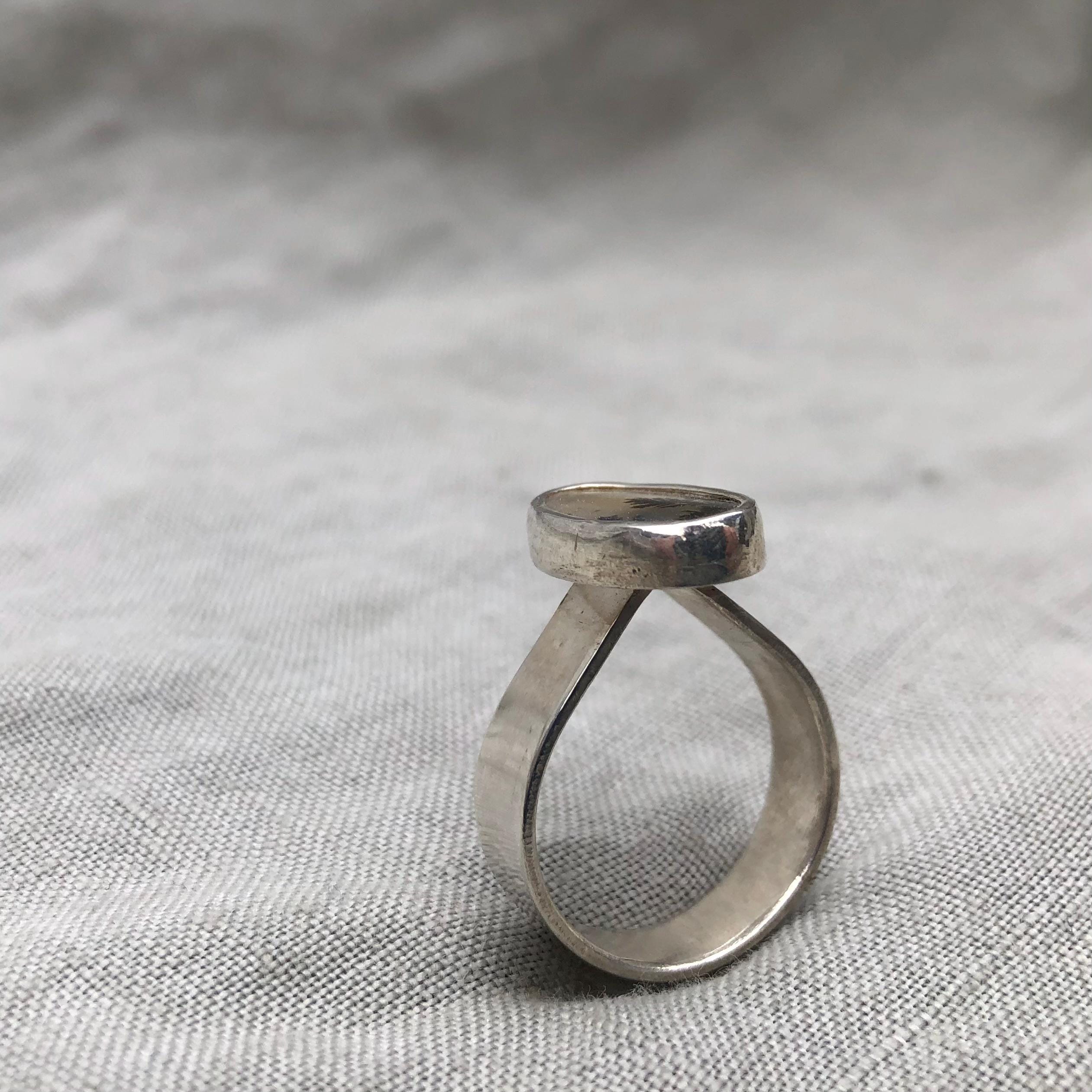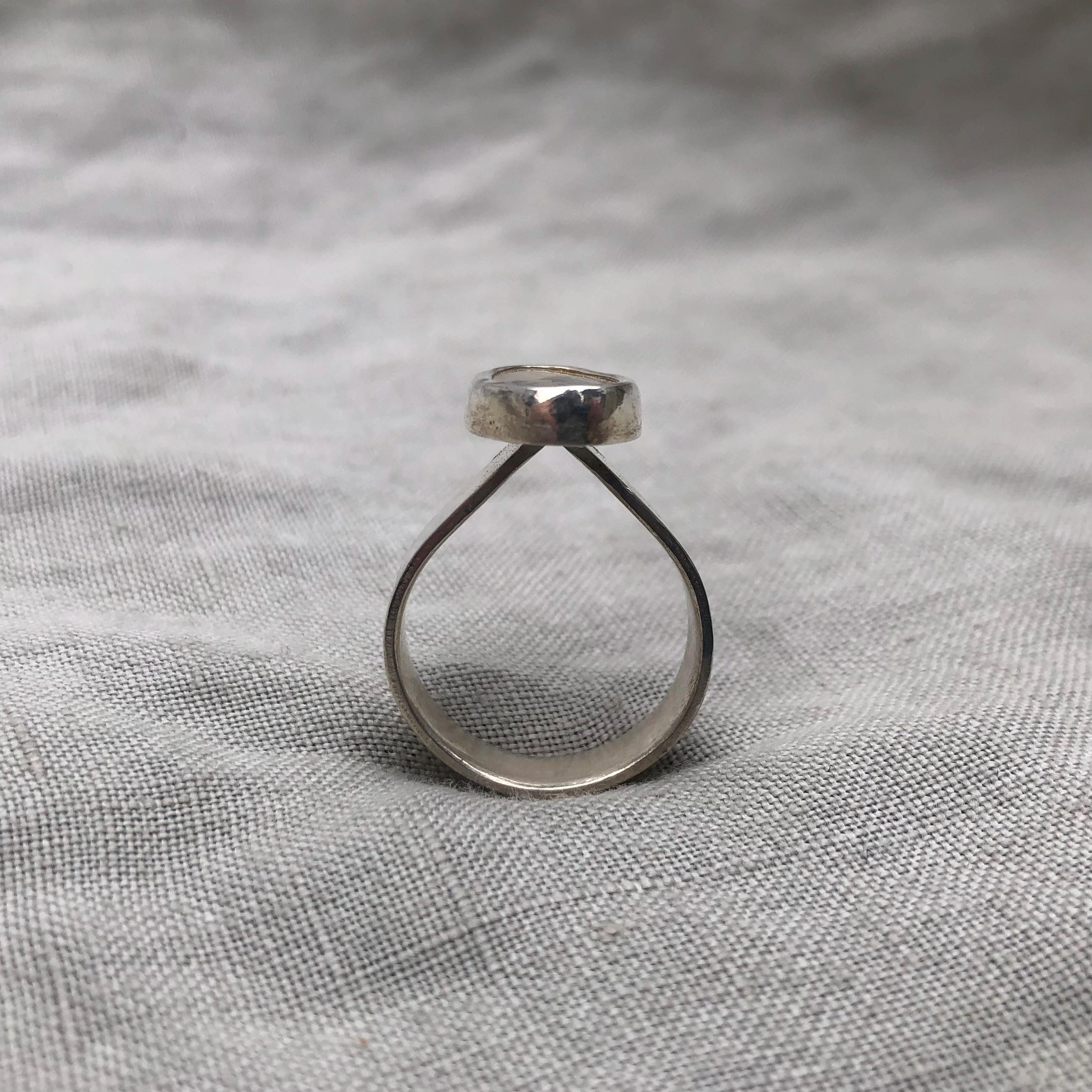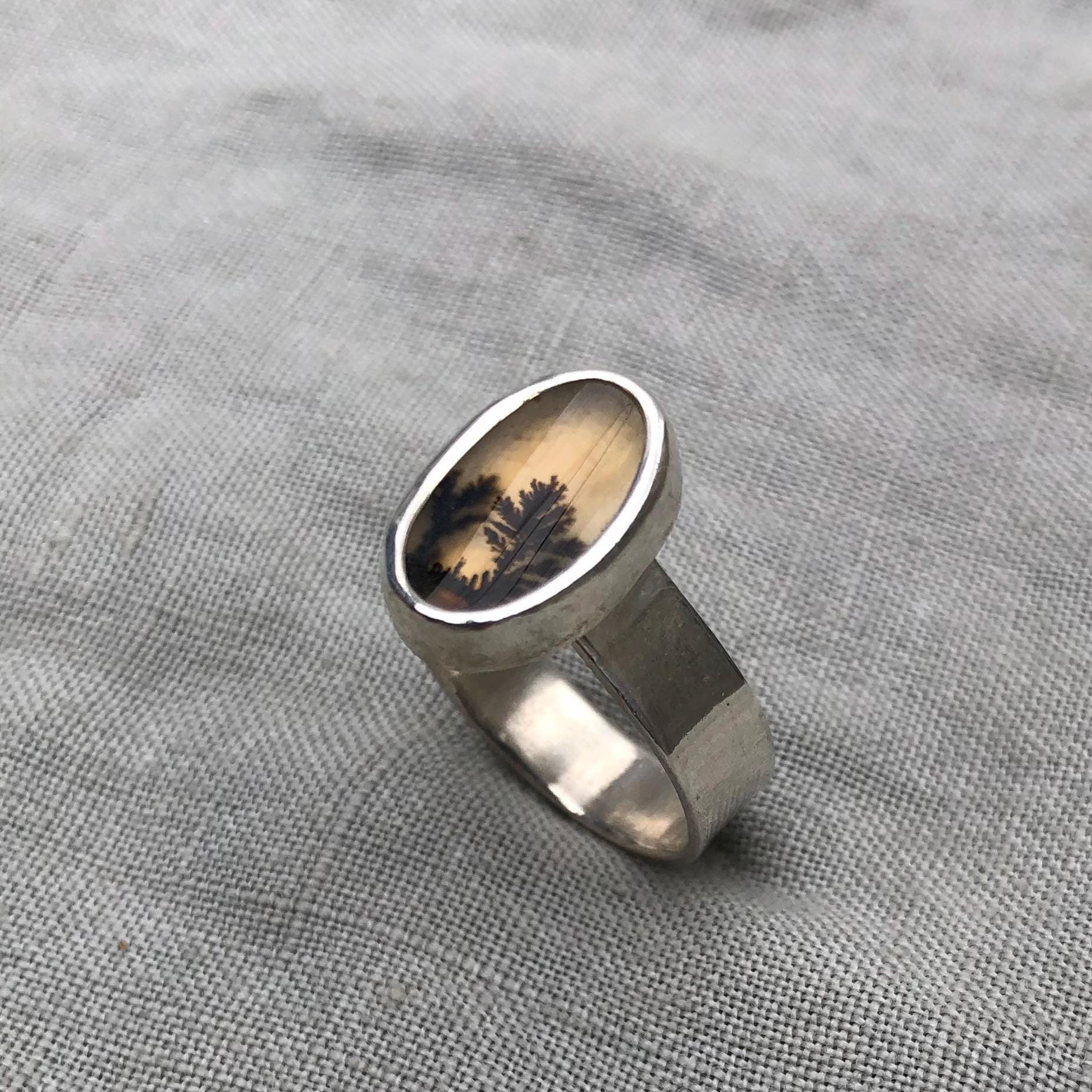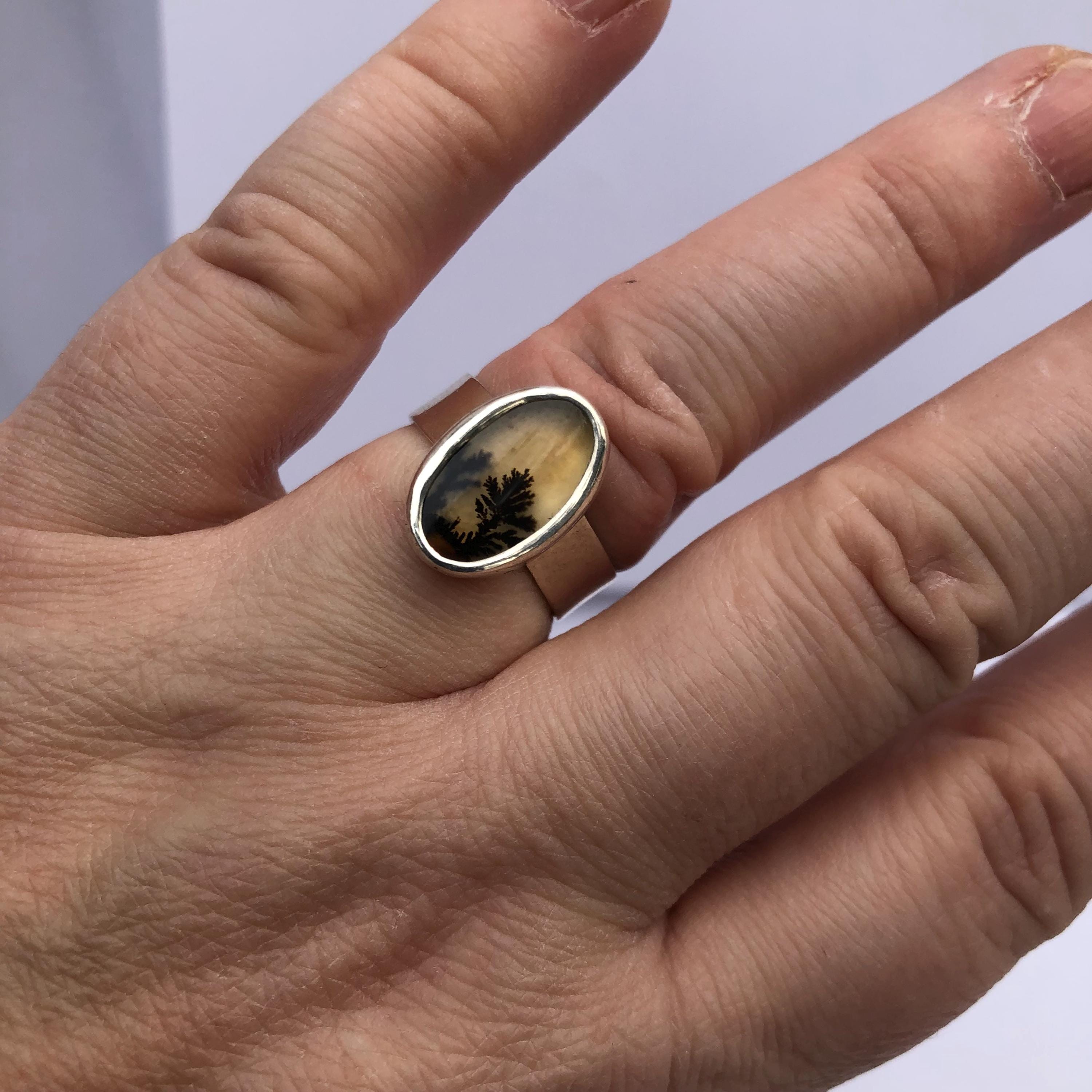 Dendritic agate ring in argentium sterling silver, size 7 1/4
