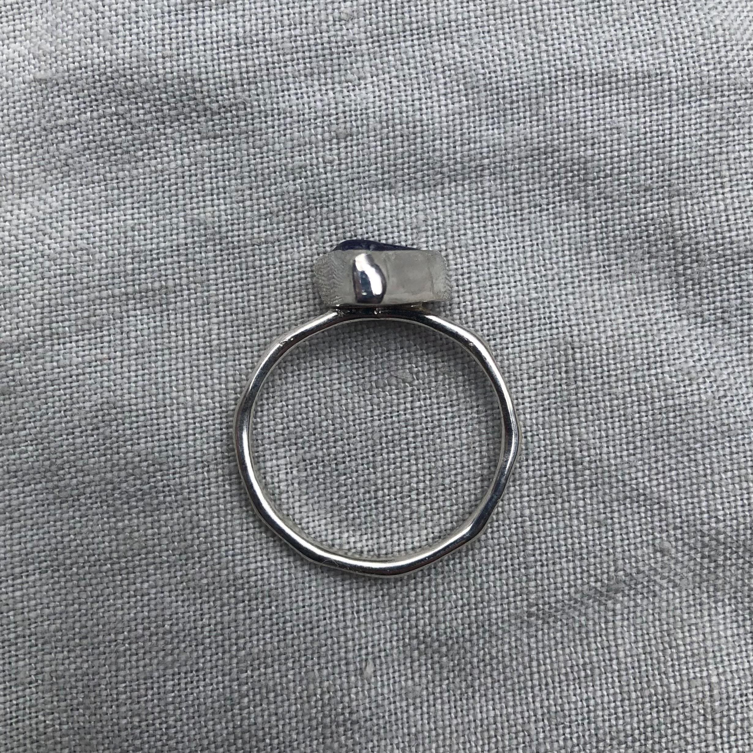 Entirely handmade by me in my Connecticut studio, this ring takes its shape from the shape of the sea glass as it was found. Other than flattening the back slightly, I did not alter the glass in any way. The sea glass featured in the ring is a brilliant electric blue.