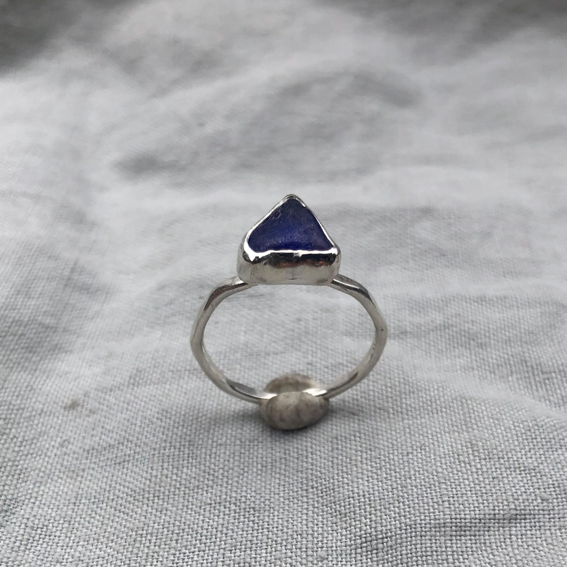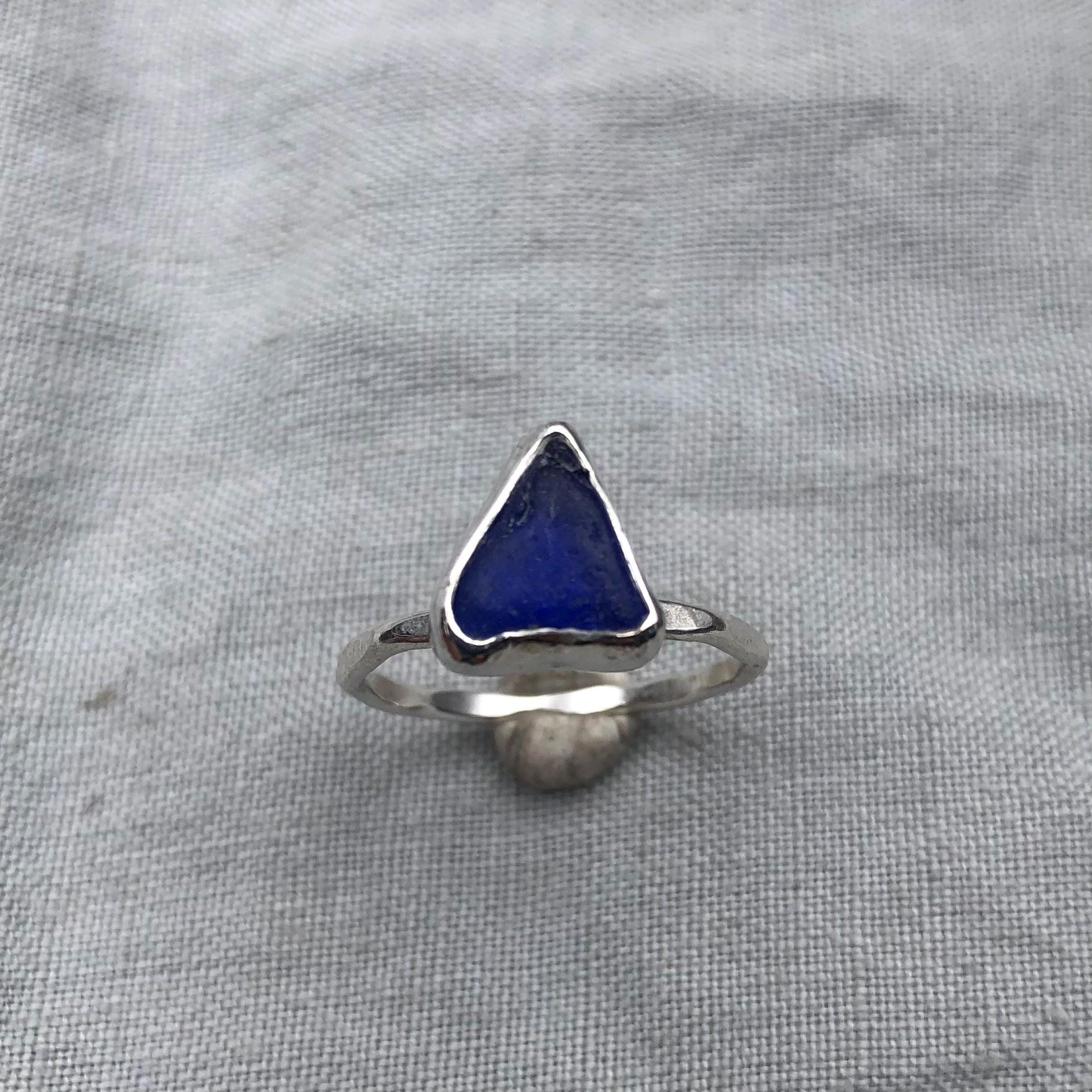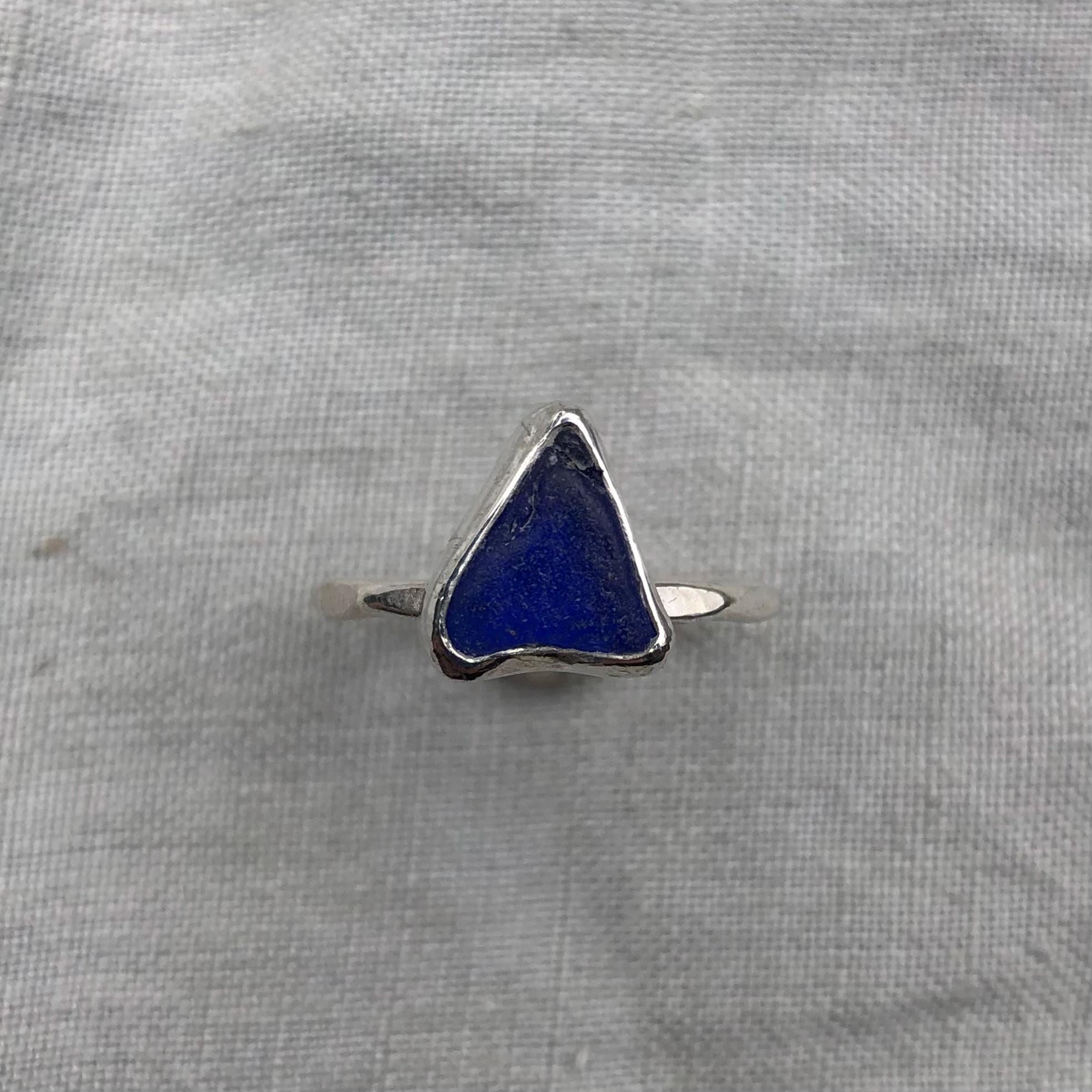 Electric blue sea glass ring in argentium sterling silver // Found beach glass ring // U.S. size 7 1/2