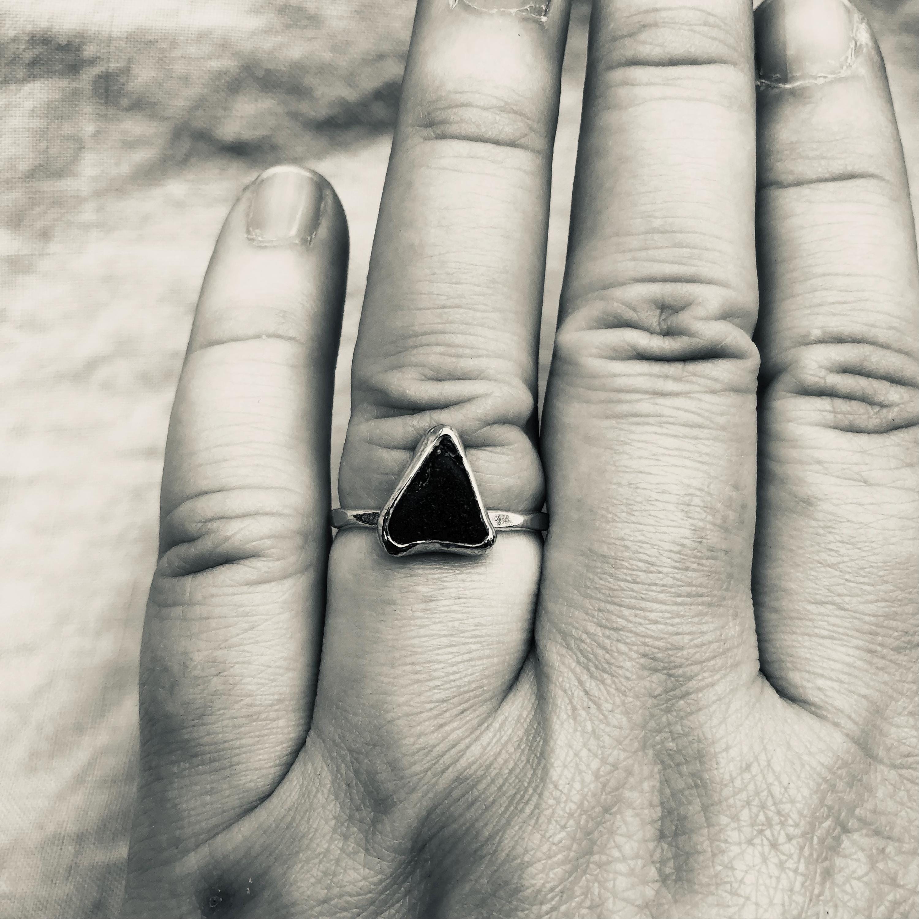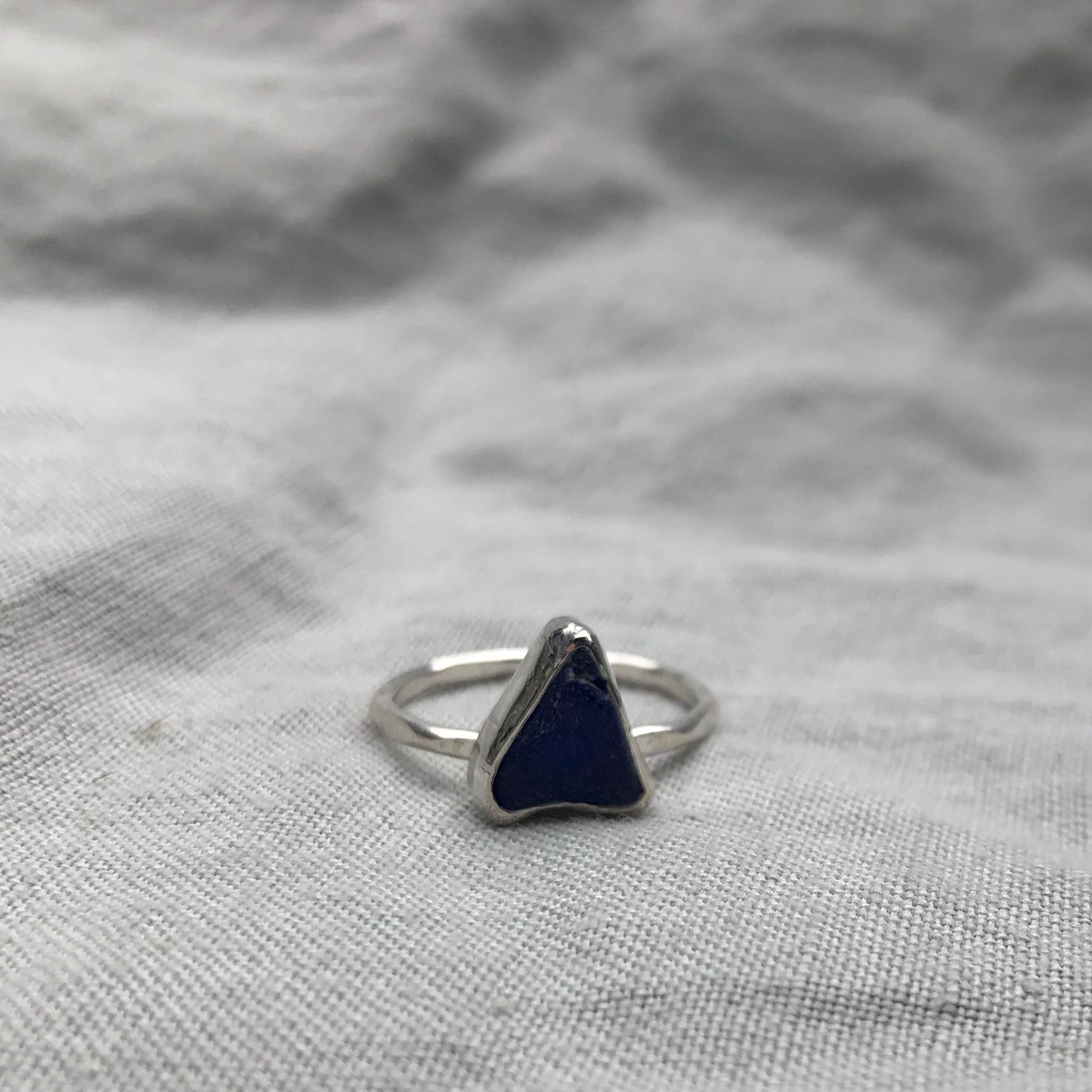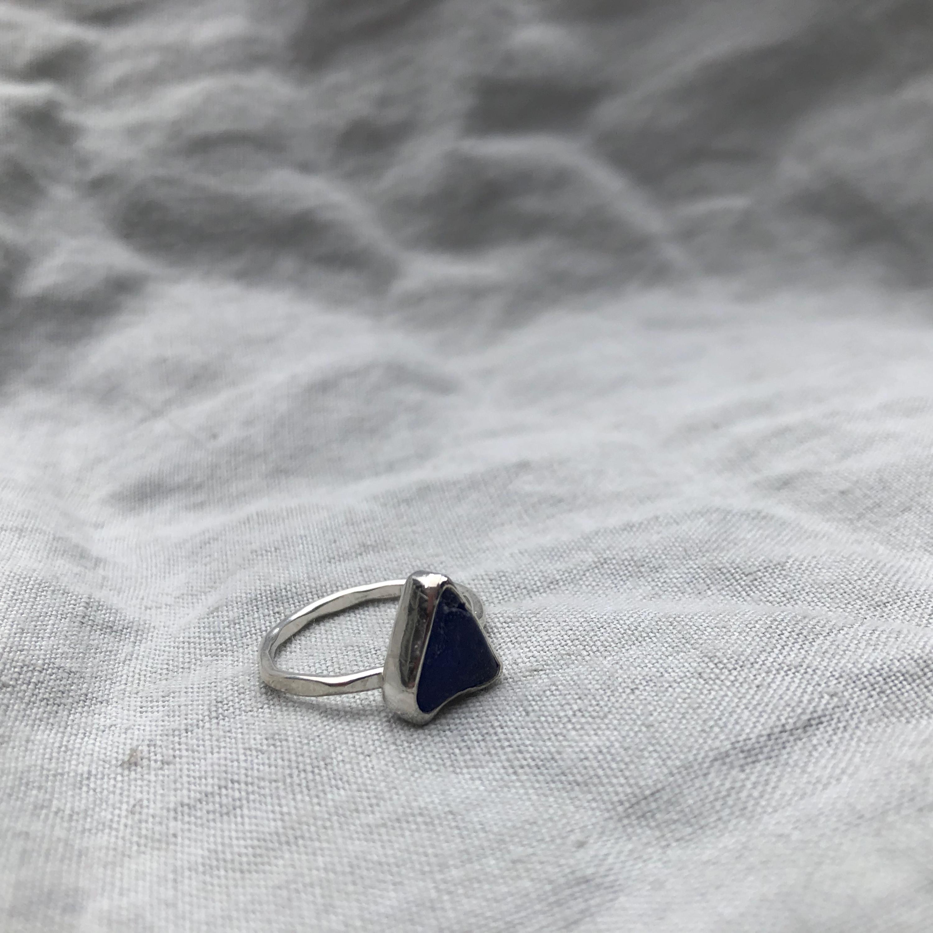 Electric blue sea glass ring in argentium sterling silver // Found beach glass ring // U.S. size 7 1/2