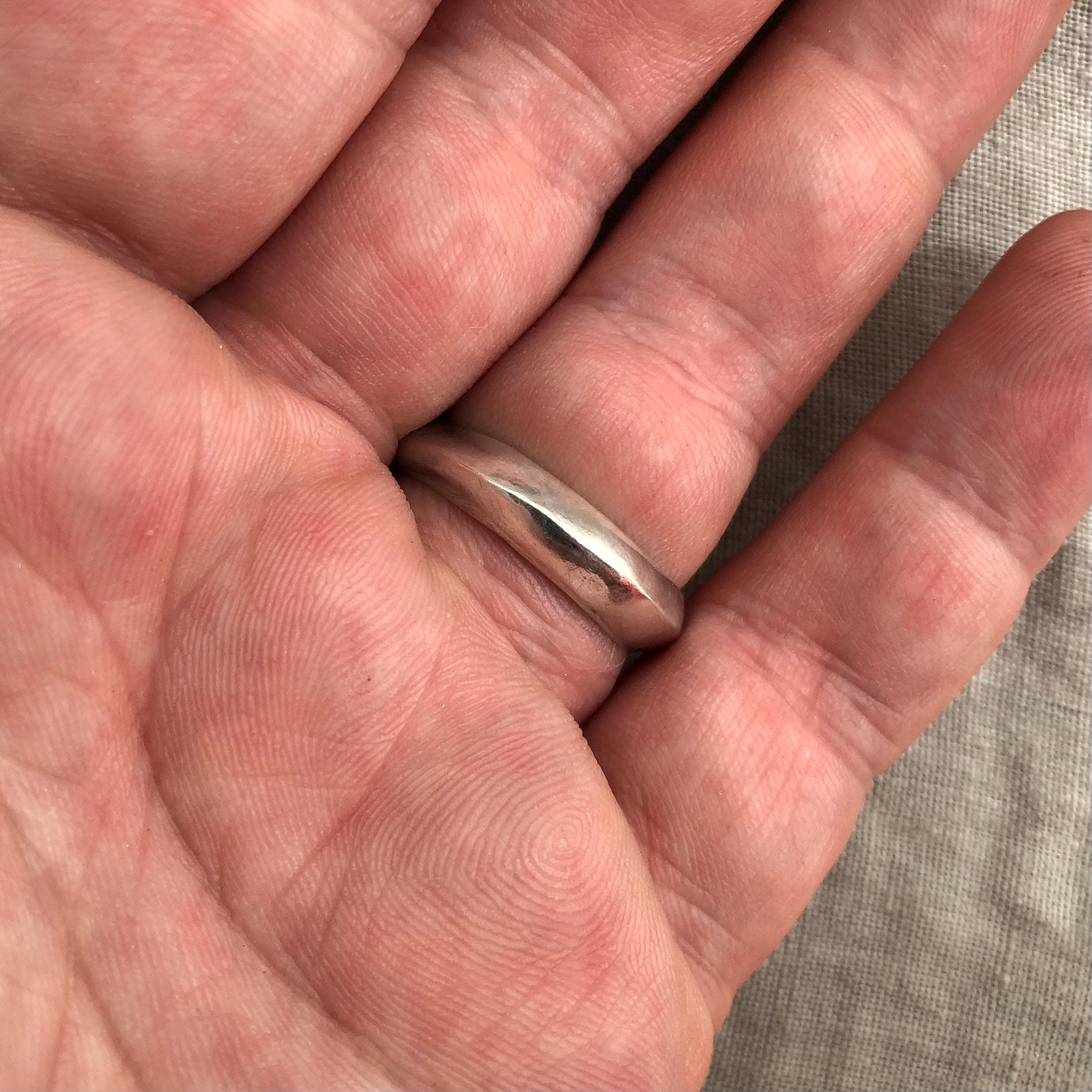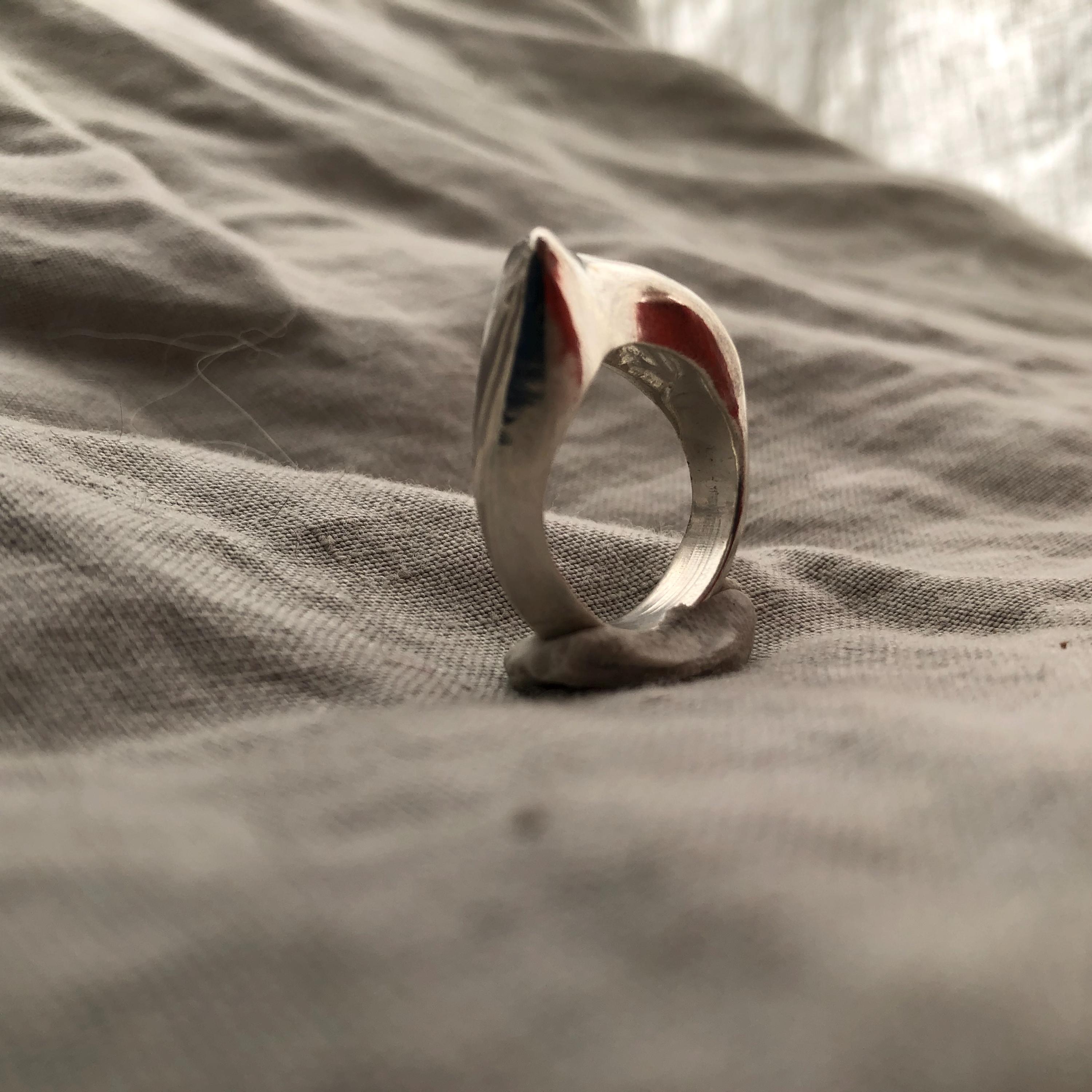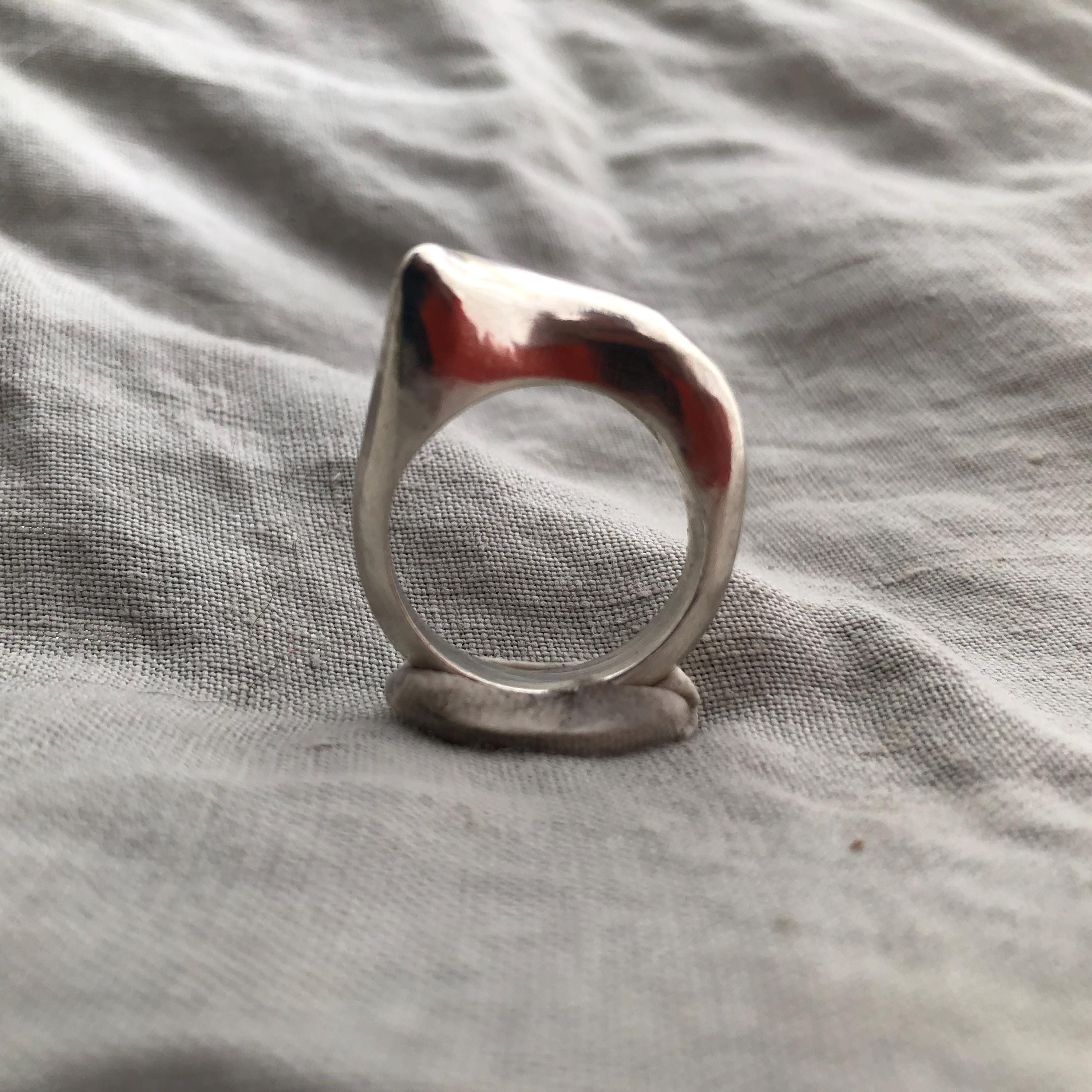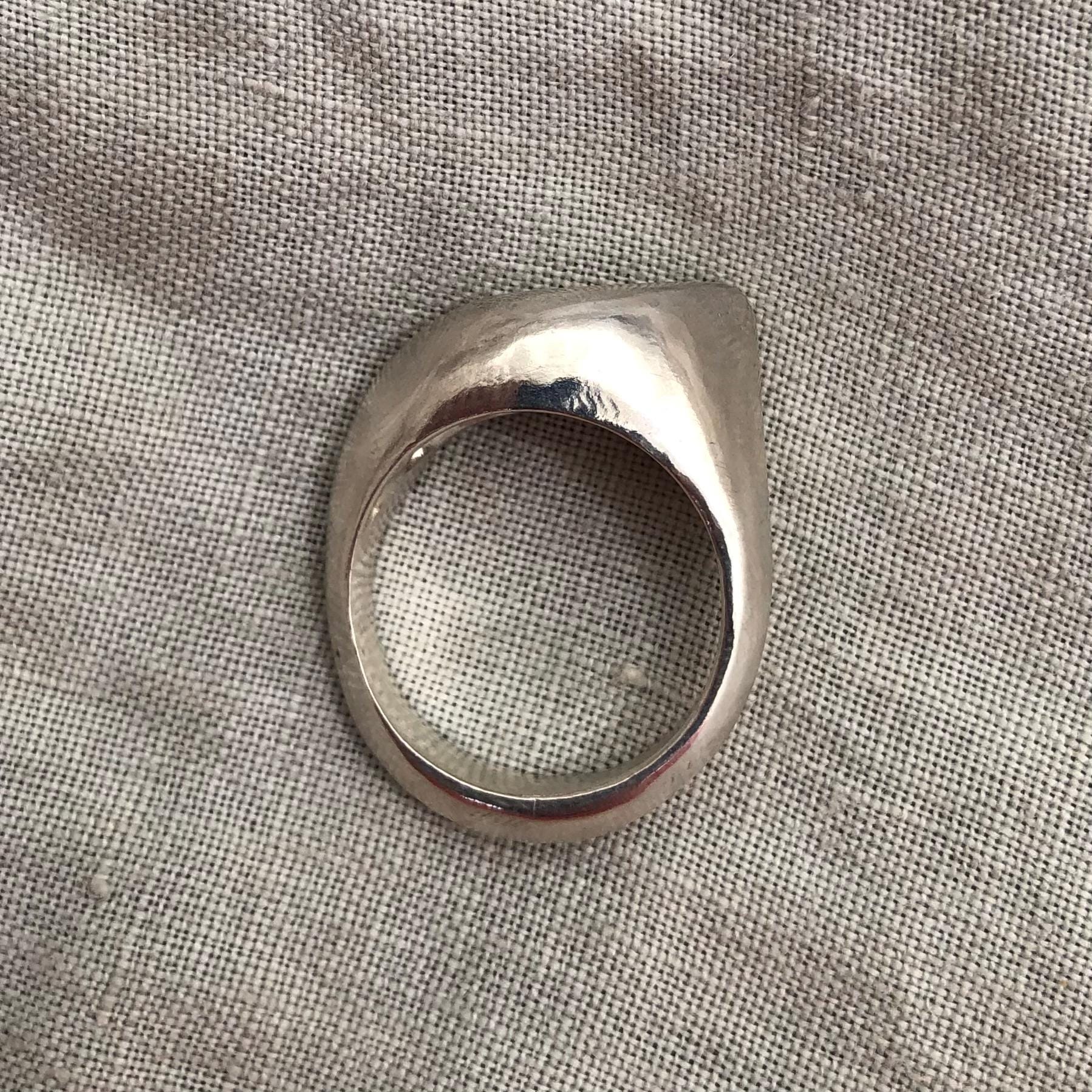 The ring was made using the ancient technique of lost-wax casting. Only one model was made, and it was destroyed as part of the casting process. Hand-carved by me in my Connecticut studio, this ring is one of a kind. There will never be another one just like it. Since it is cast, the ring is solid, not hollow.